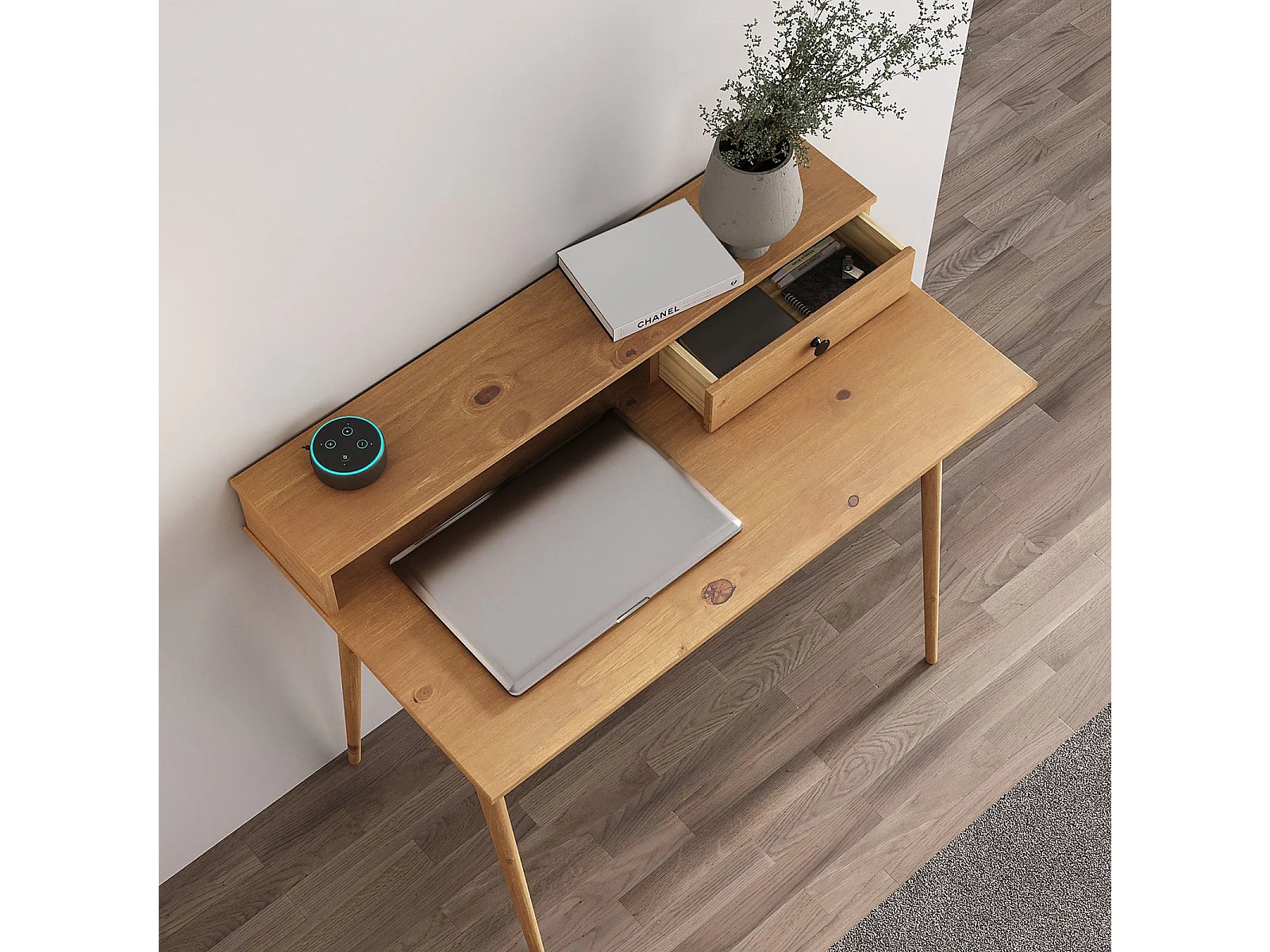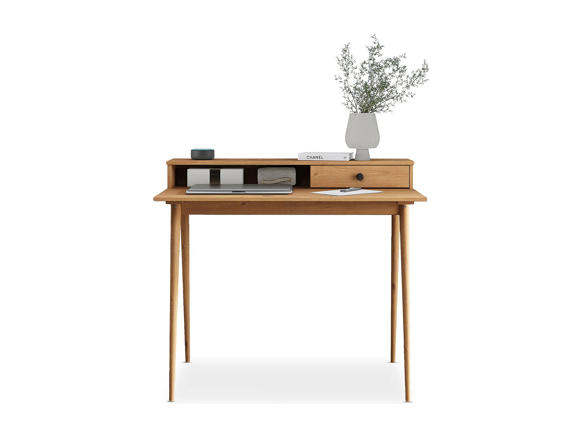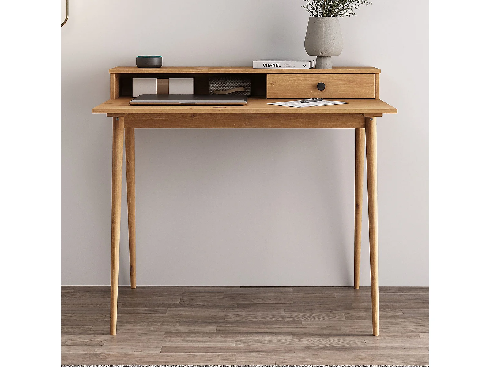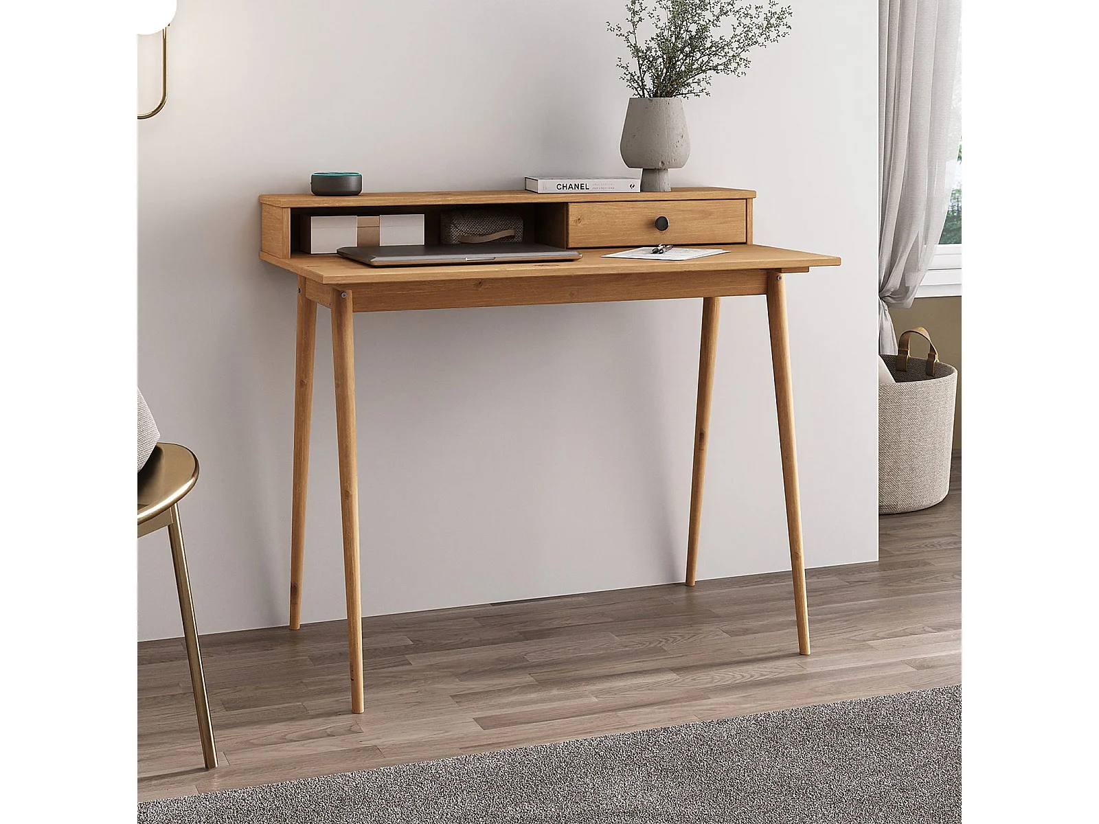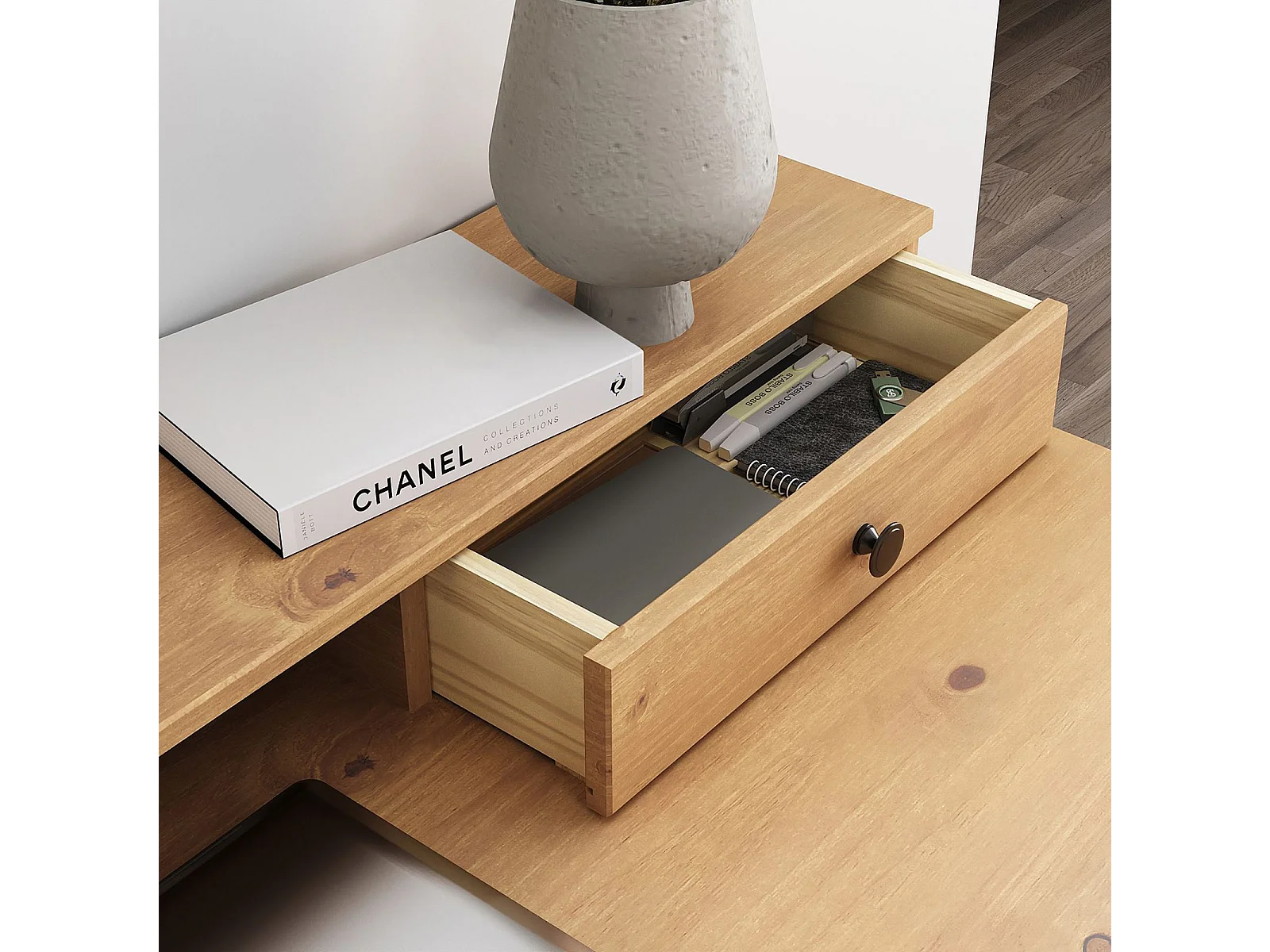 Bureau MALINA secrétaire en pin massif lasuré brun avec étagère et 1 tiroir