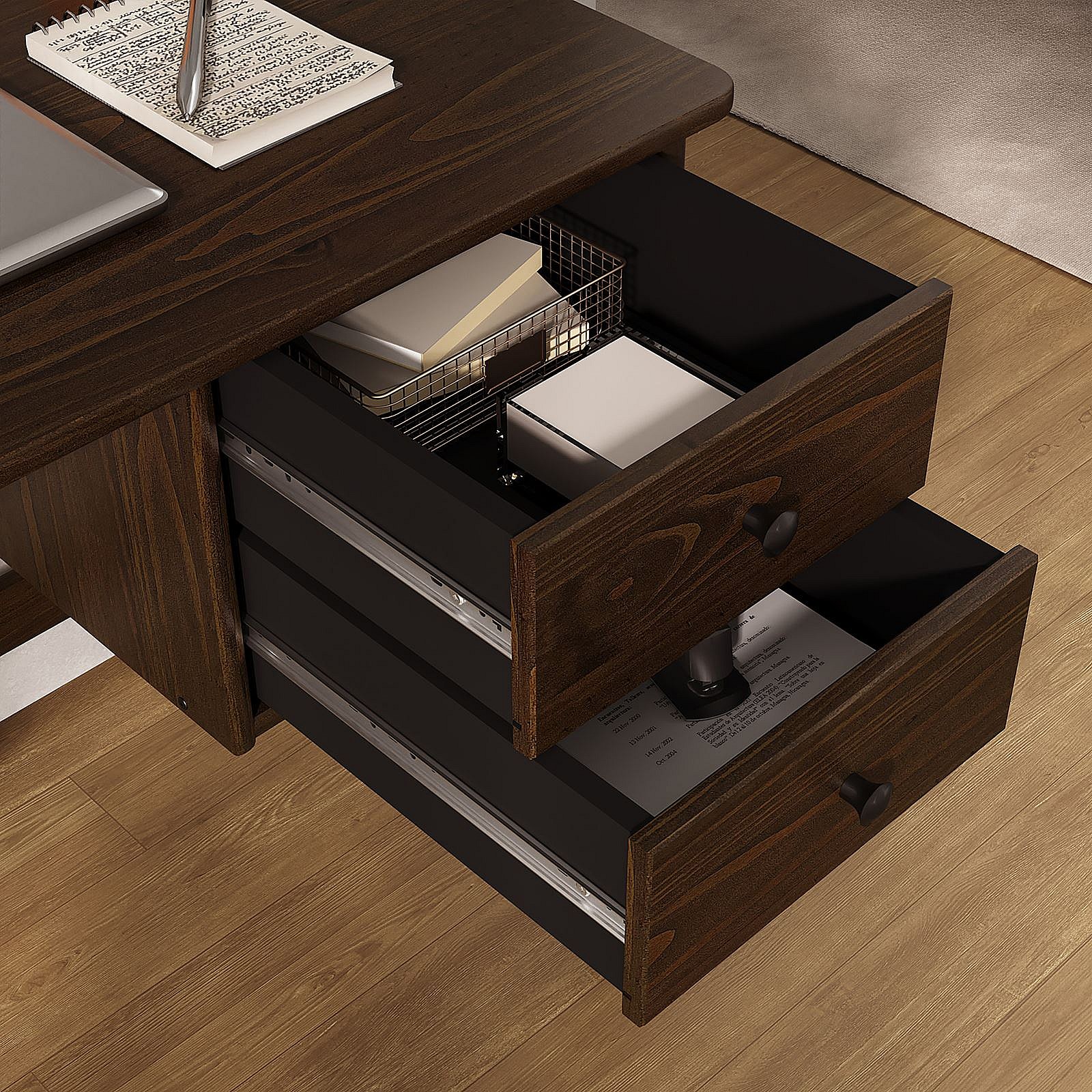Bureau MARLO H 76 cm avec 2 Tiroirs en Bois Massif Coloris Noyer, Bureau Droit avec Rangement Intégré