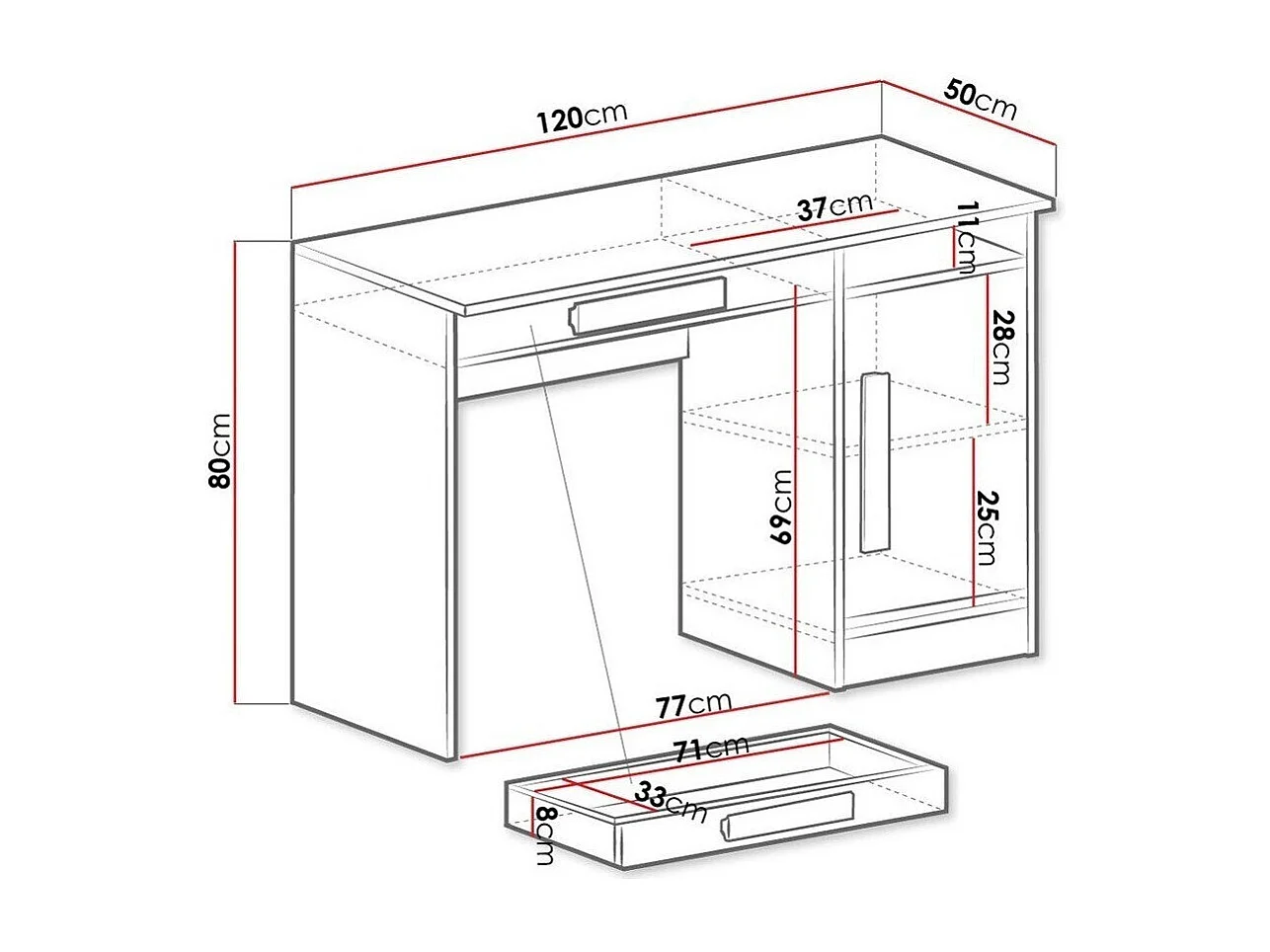 Bureau Merevari 100, Avec des portes|Avec tiroirs, Le nombre de portes: 1, 80x120x50cm