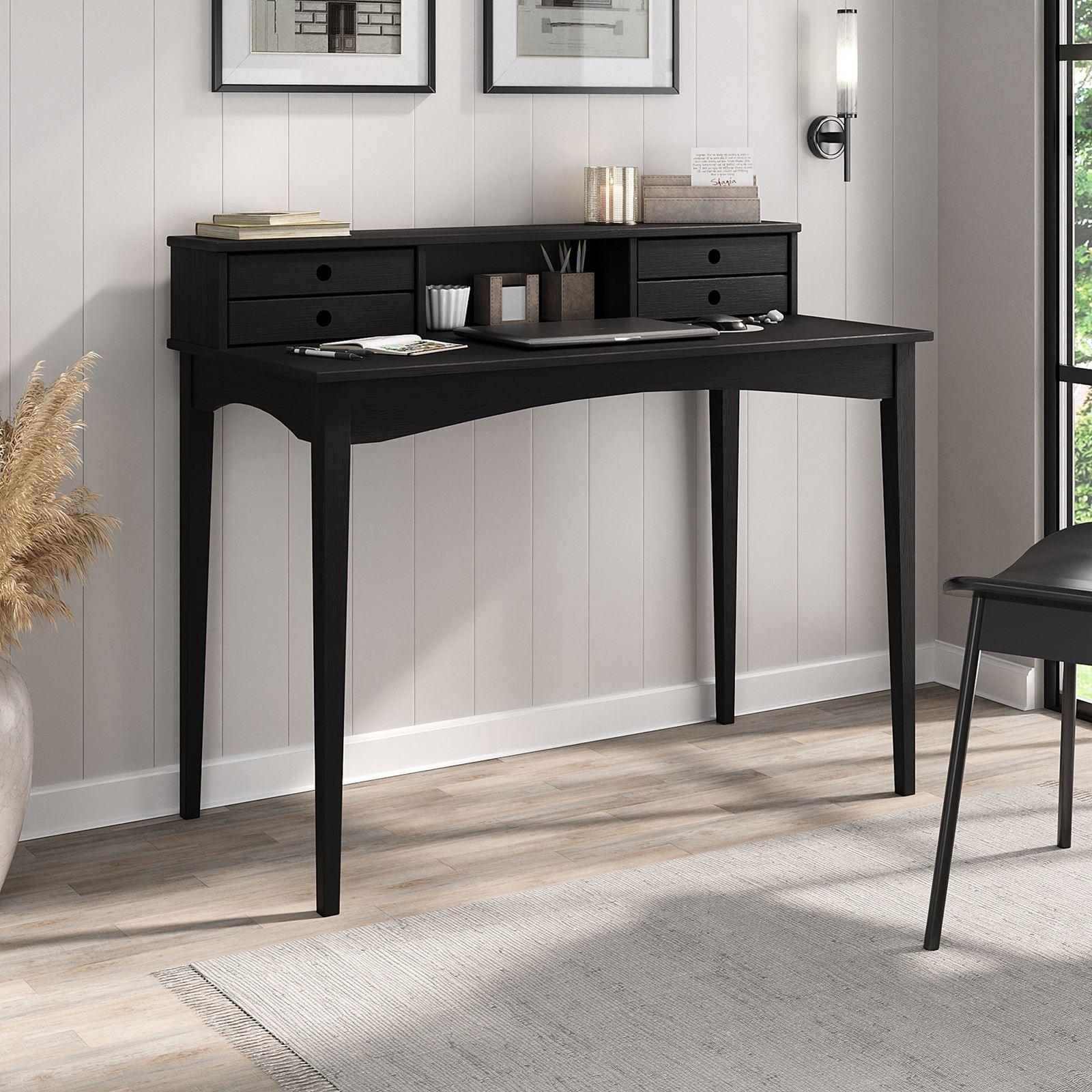 Bureau MILANO secrétaire en pin massif avec 4 tiroirs et 1 niche, Noir