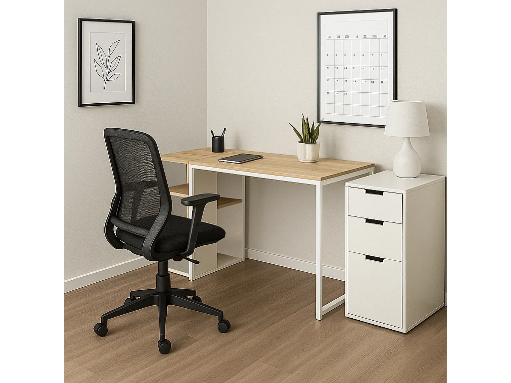 URBAN MEUBLE Bureau moderne avec cinq étagères blanc et bois de chêne