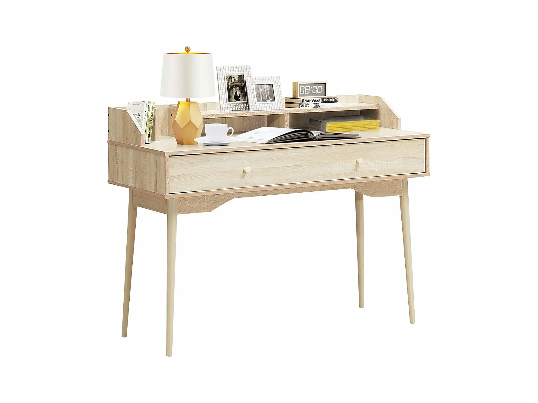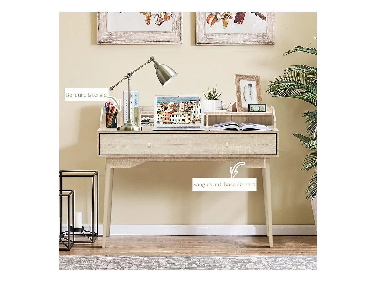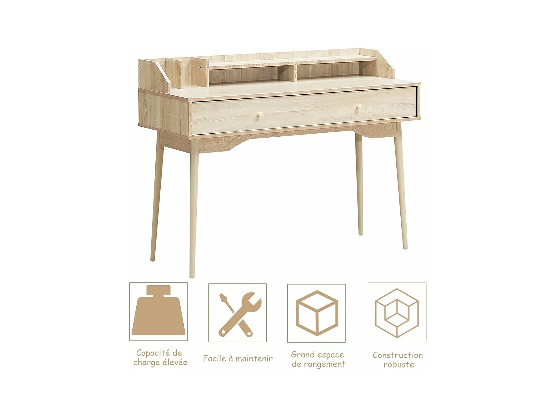 Bureau Moderne avec Tiroir et Étagère, 120 x 50 x 93 CM, Table d'Écriture avec Dispositif Anti-basculement, Naturel