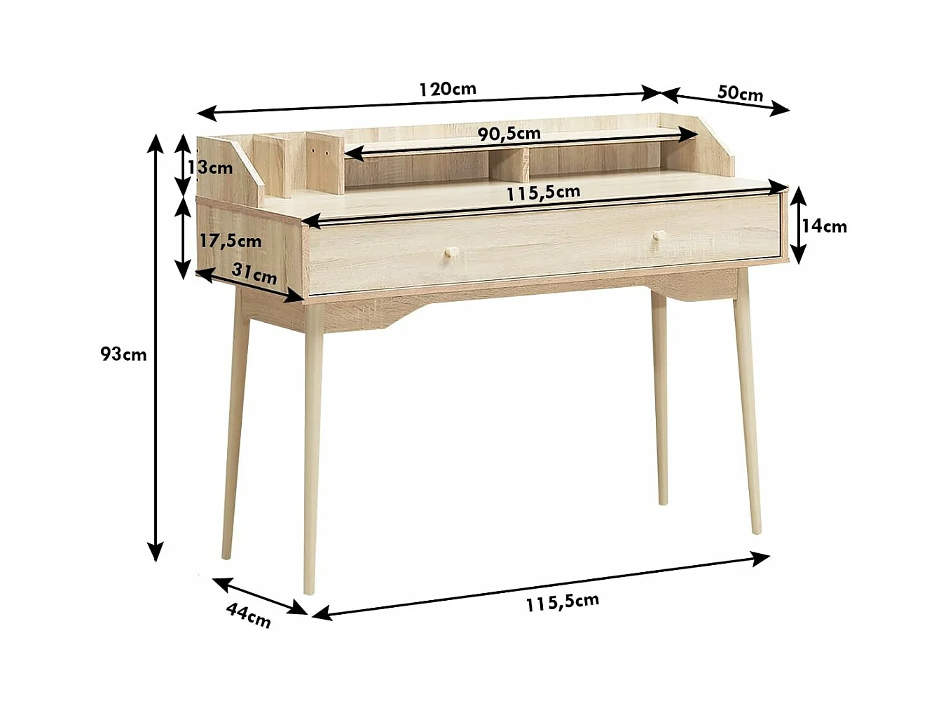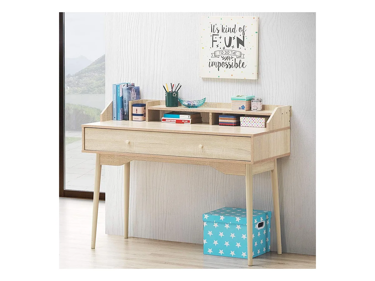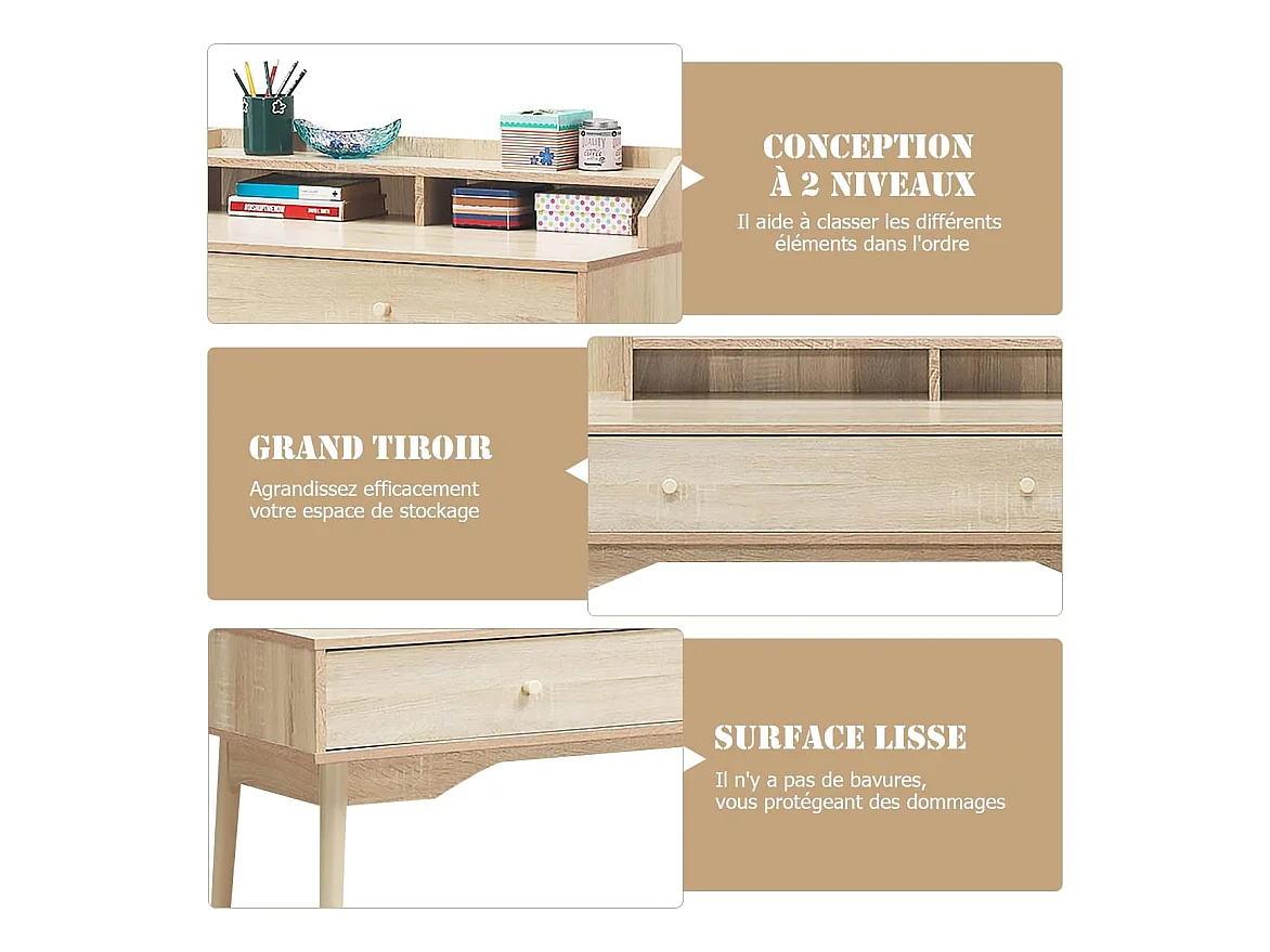 Bureau Moderne avec Tiroir et Étagère, 120 x 50 x 93 CM, Table d'Écriture avec Dispositif Anti-basculement, Naturel