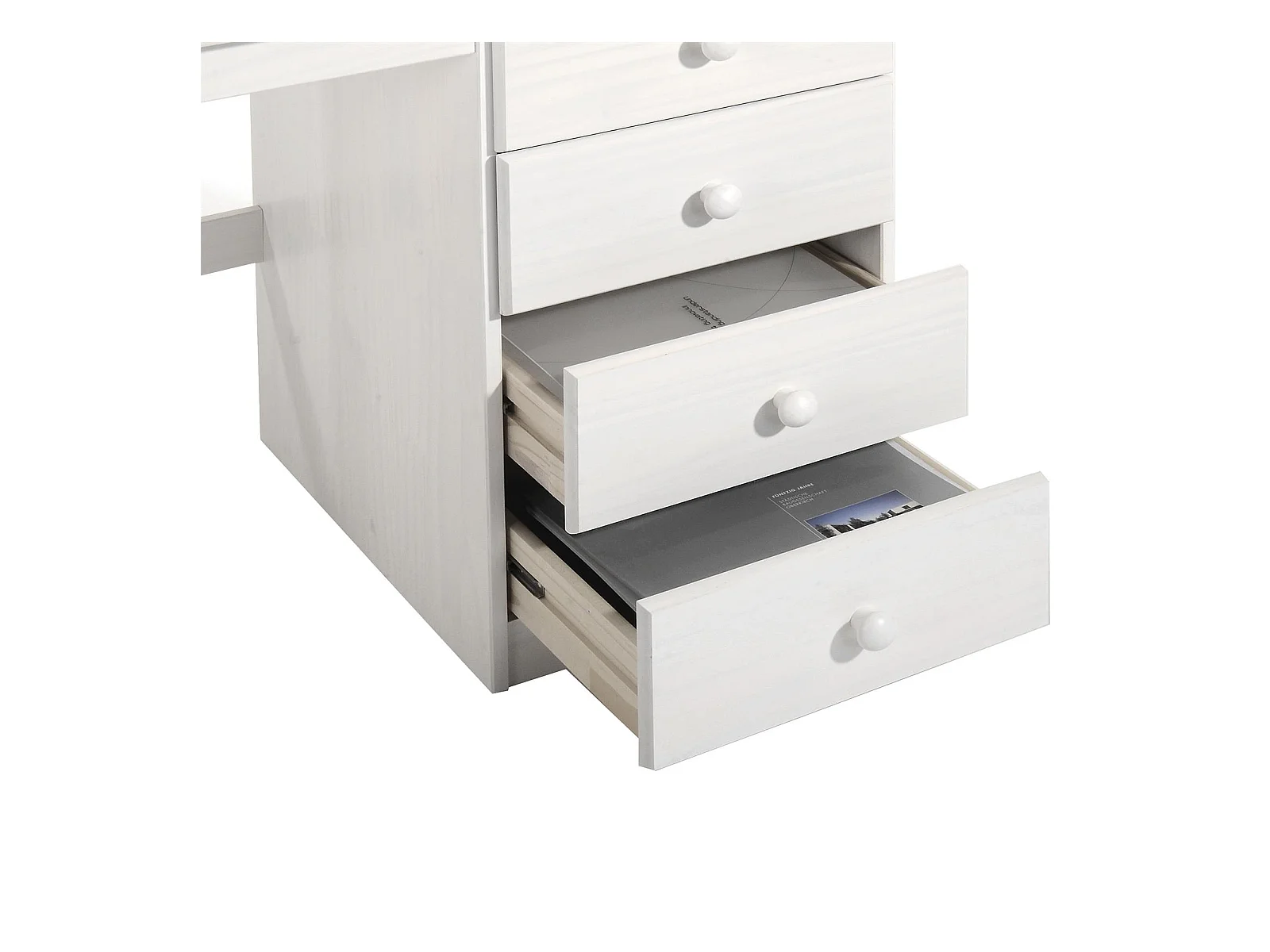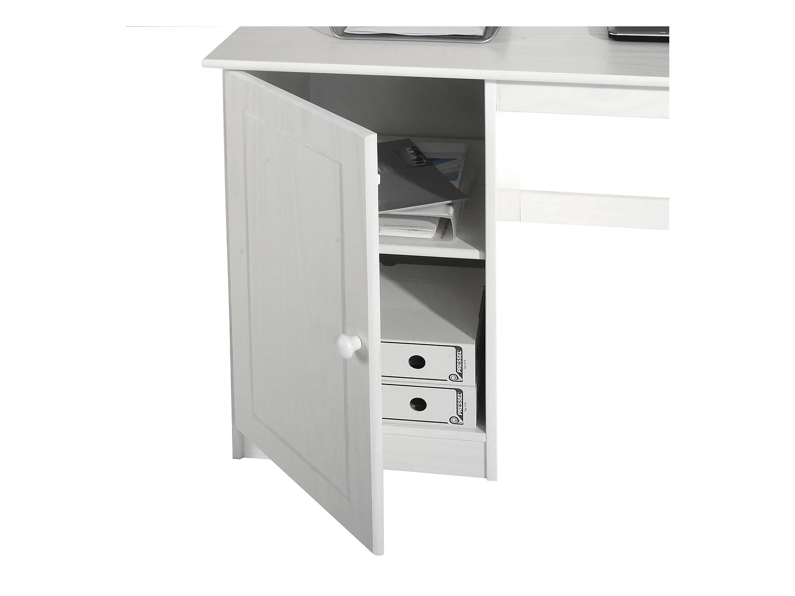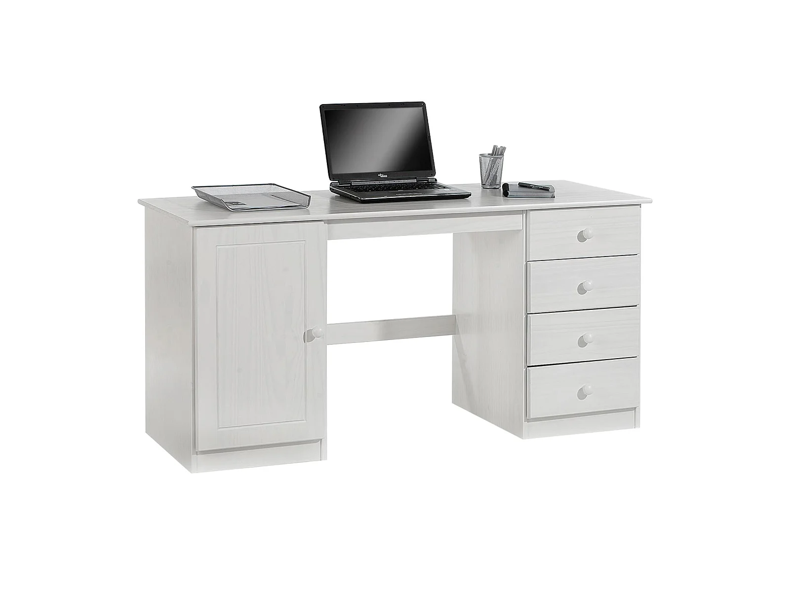 Bureau MANAGER L 145 cm en bois massif, lasuré blanc, espace de rangement avec 4 tiroirs et 1 placard