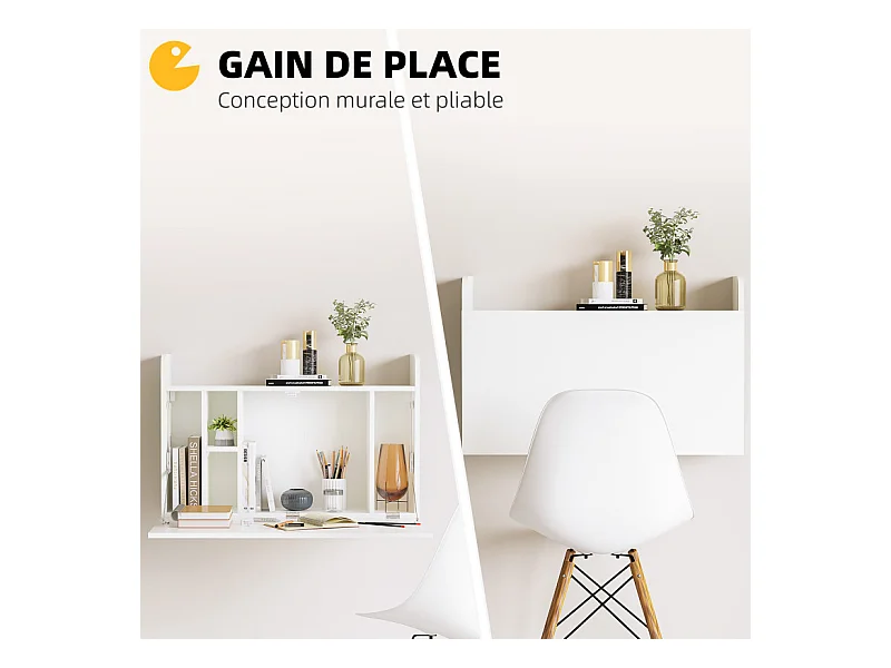 Bureau mural multi-rangement pliable CLOVIS blanc