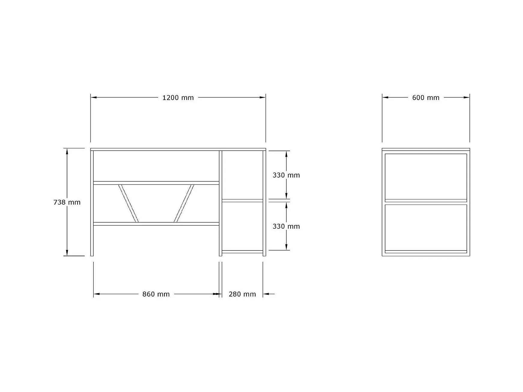 Bureau avec rangement cubes et étagère - effet chêne MARFA
