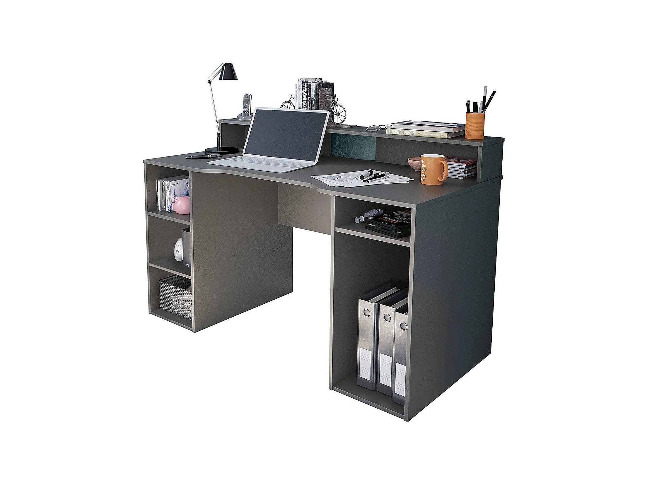 Bureau Phoenix, Bureau de jeu multifonction moderne, Table d'étude pour PC et support CD, Table d'étude avec étagères, 136x67h88 cm, Anthracite