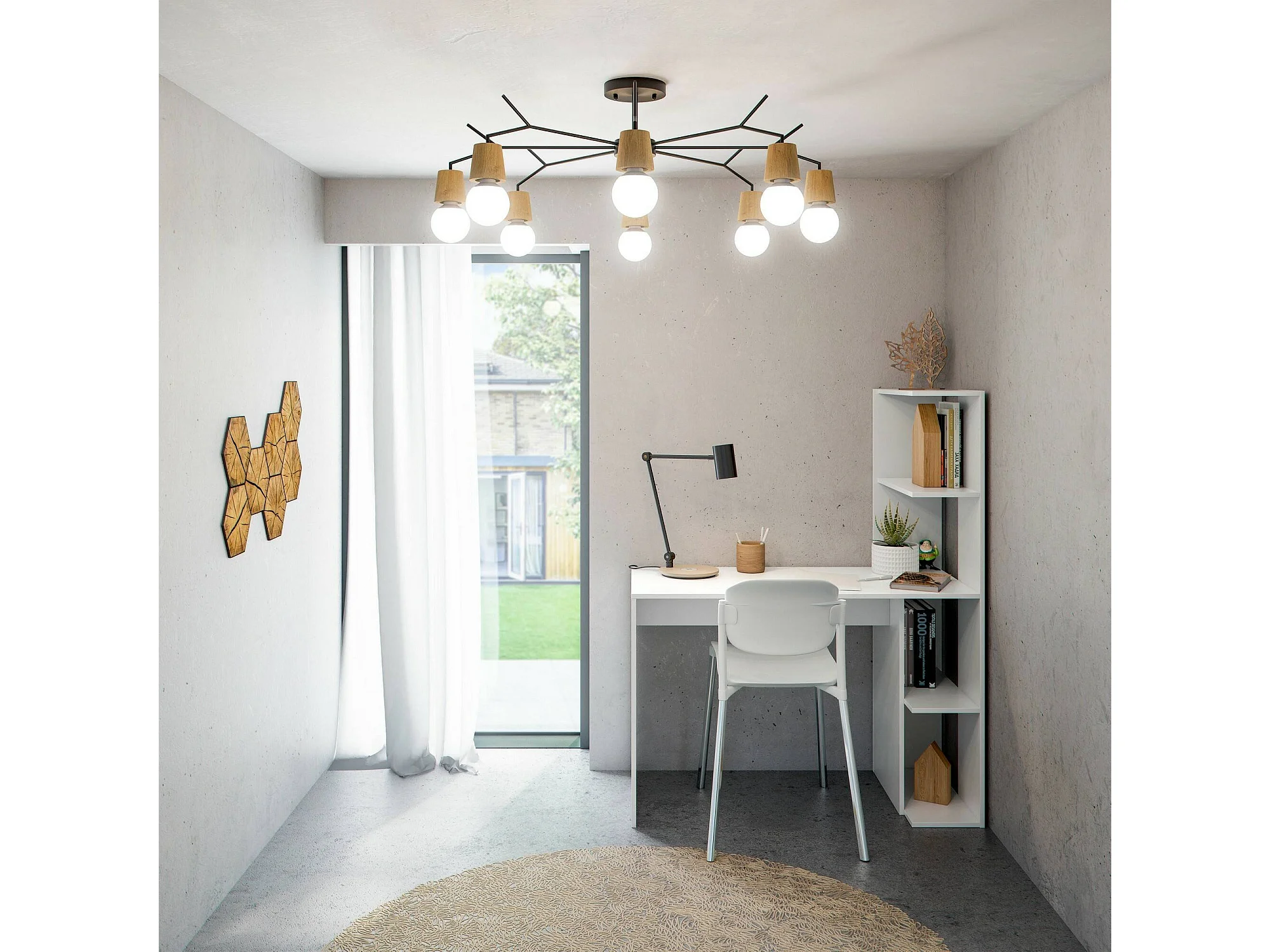 Bureau Pittston, Bureau linéaire avec bibliothèque, Table de bureau polyvalente peu encombrante, 110x50h136 cm, Blanc