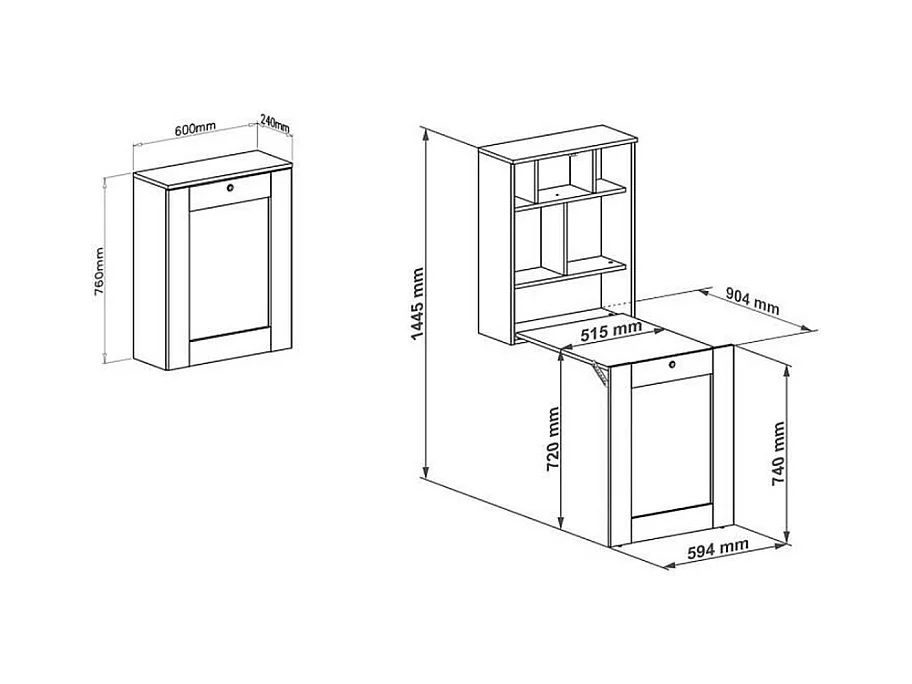 Armoire Placard Convertible en bureau et table Home office 175x80x36cm « Meggie-Or Artisan»