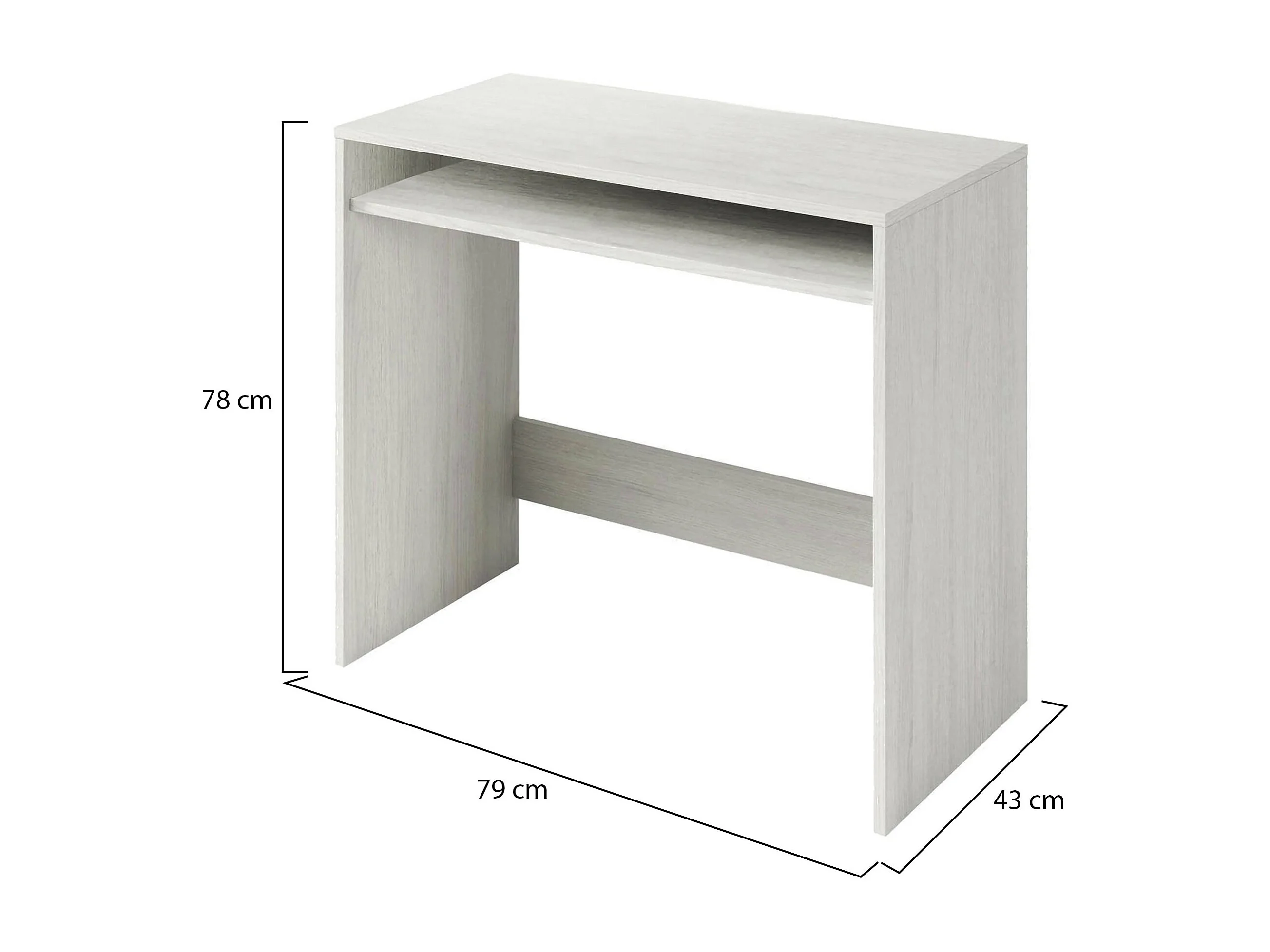 Bureau Dmachi, Bureau linéaire avec étagère fixe, Table d'étude ou de bureau pour PC, 79x43h78 cm, Effet bois blanc