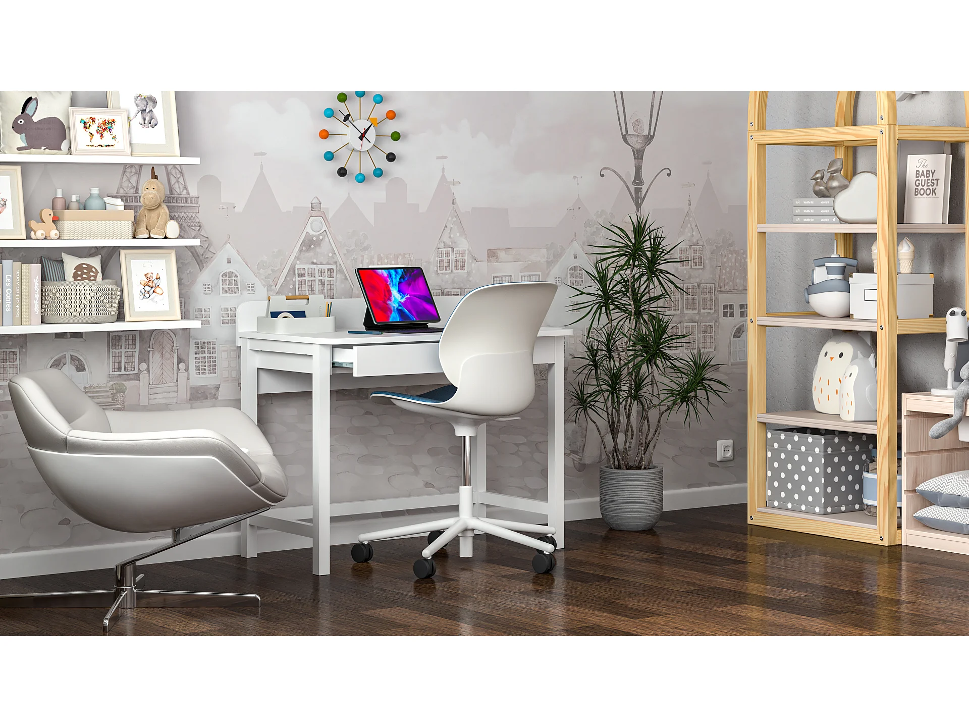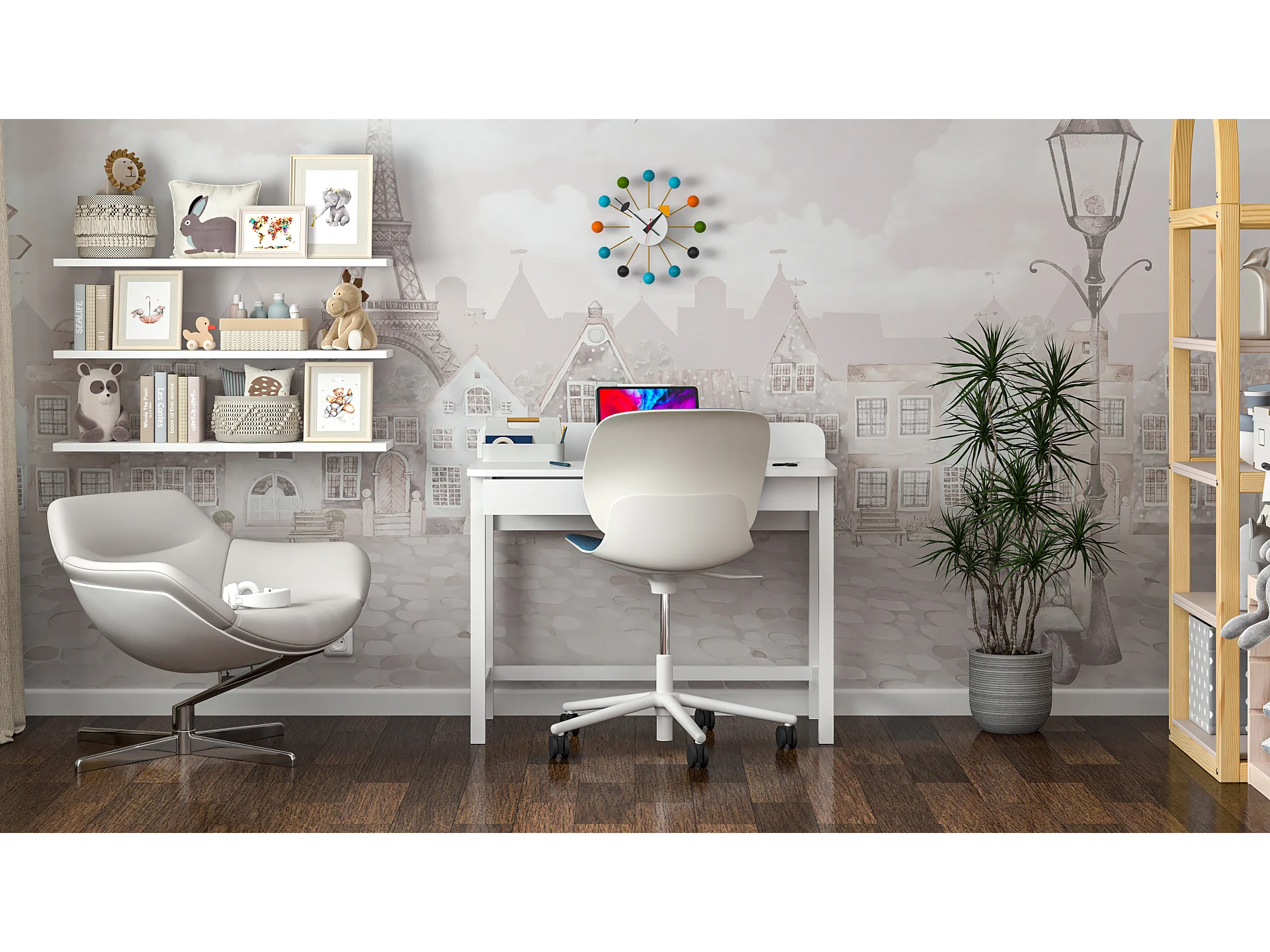Bureau enfant en pin massif 120x60 blanc
