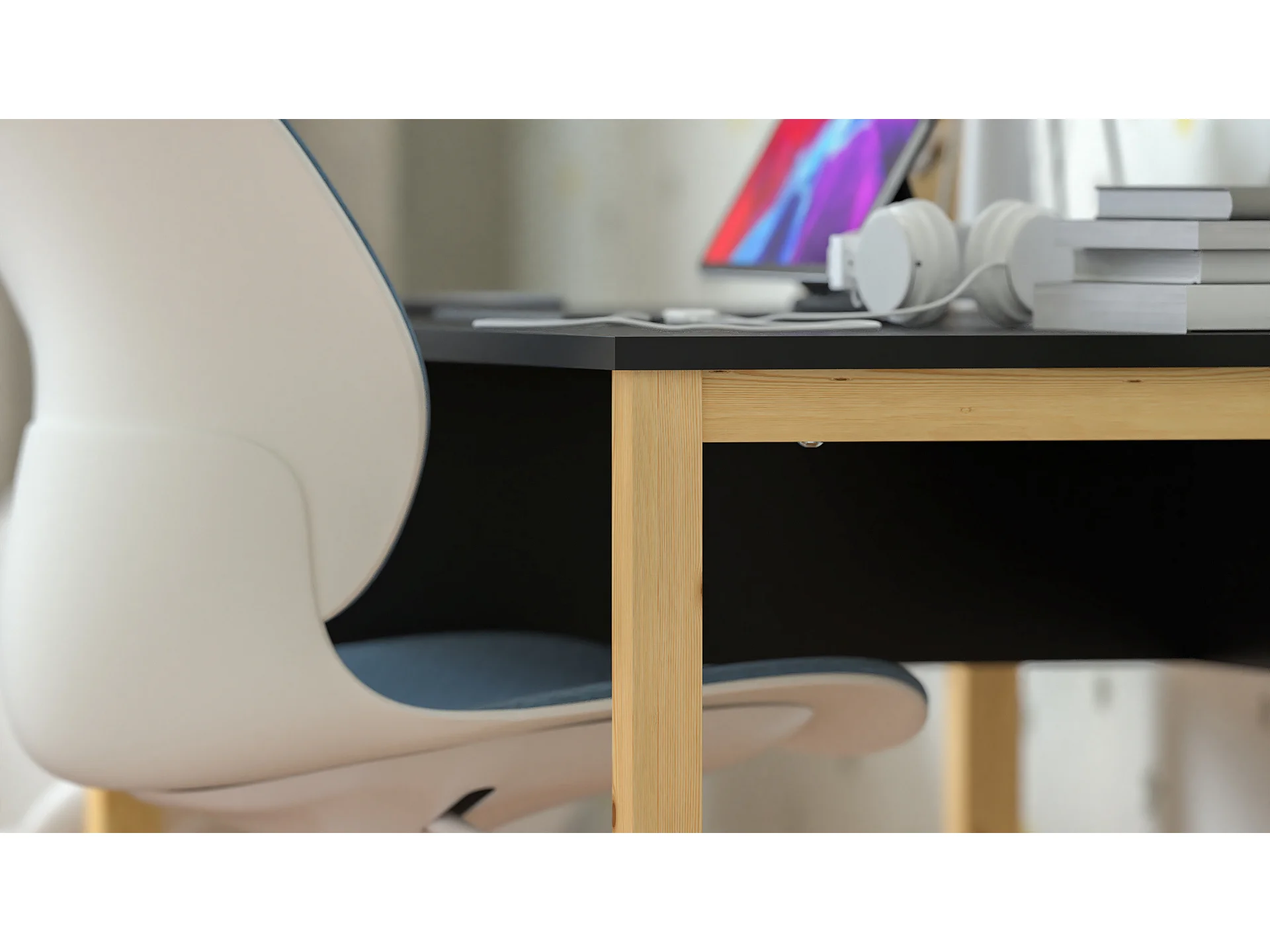 Bureau pour garçon en pin massif 120x60 noir