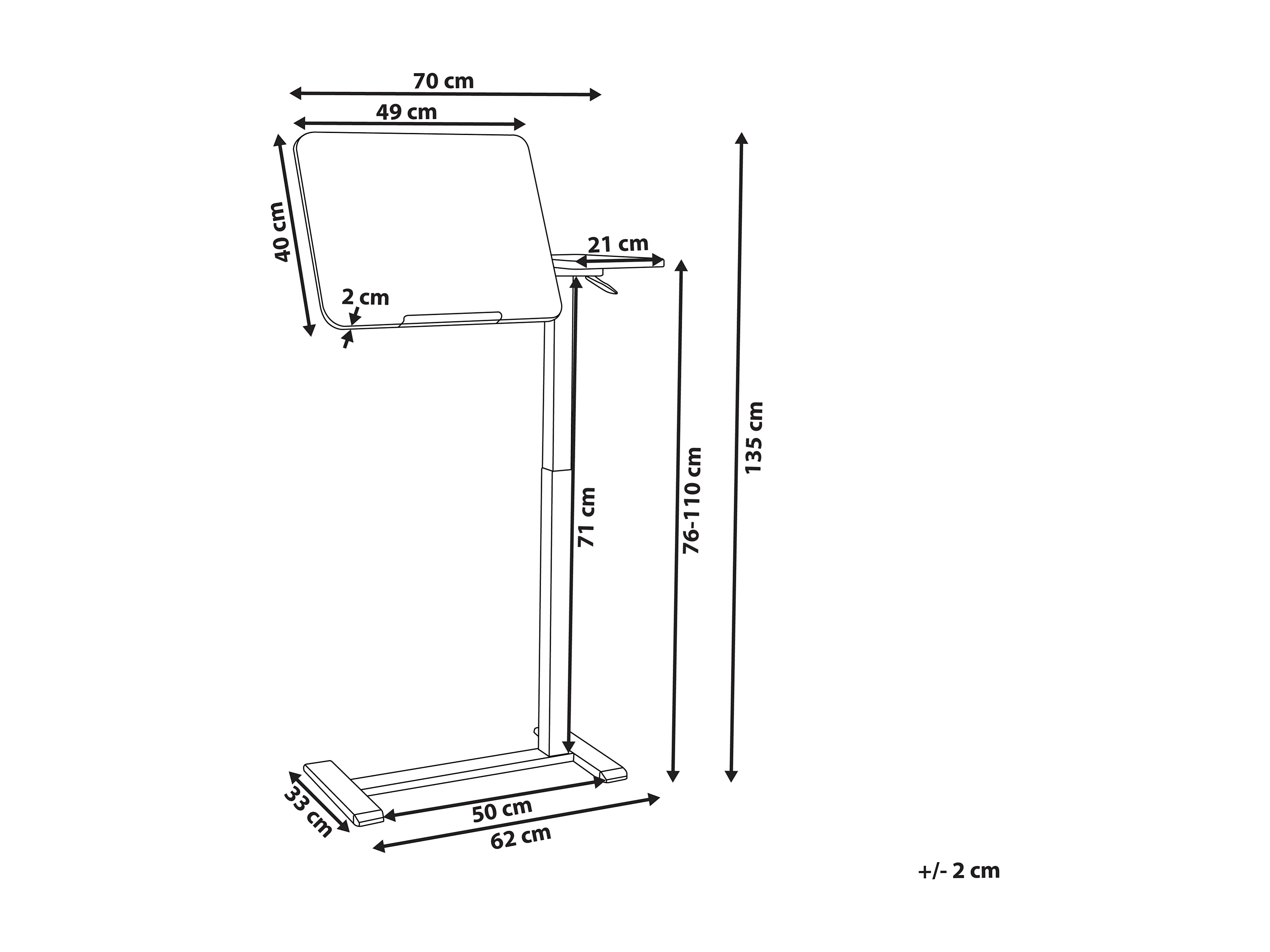 Bureau réglable manuellement en hauteur pour ordinateur portable SCHOLA Noir 70 cm 40 cm