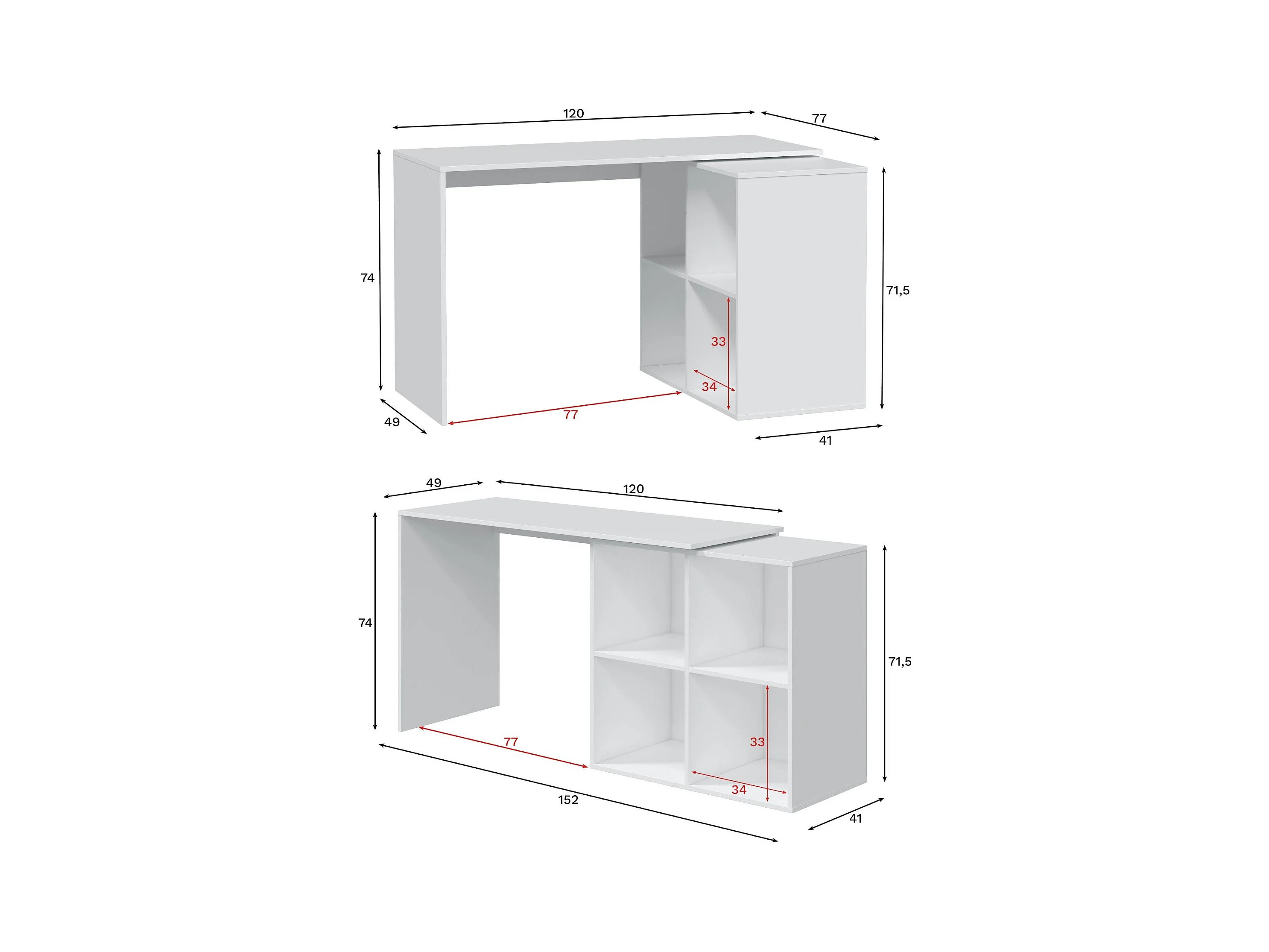 Bureau Revere, Bureau d'angle, Table de bureau polyvalente, Bureau multi-positions peu encombrant, 152x49h74 cm, Blanc
