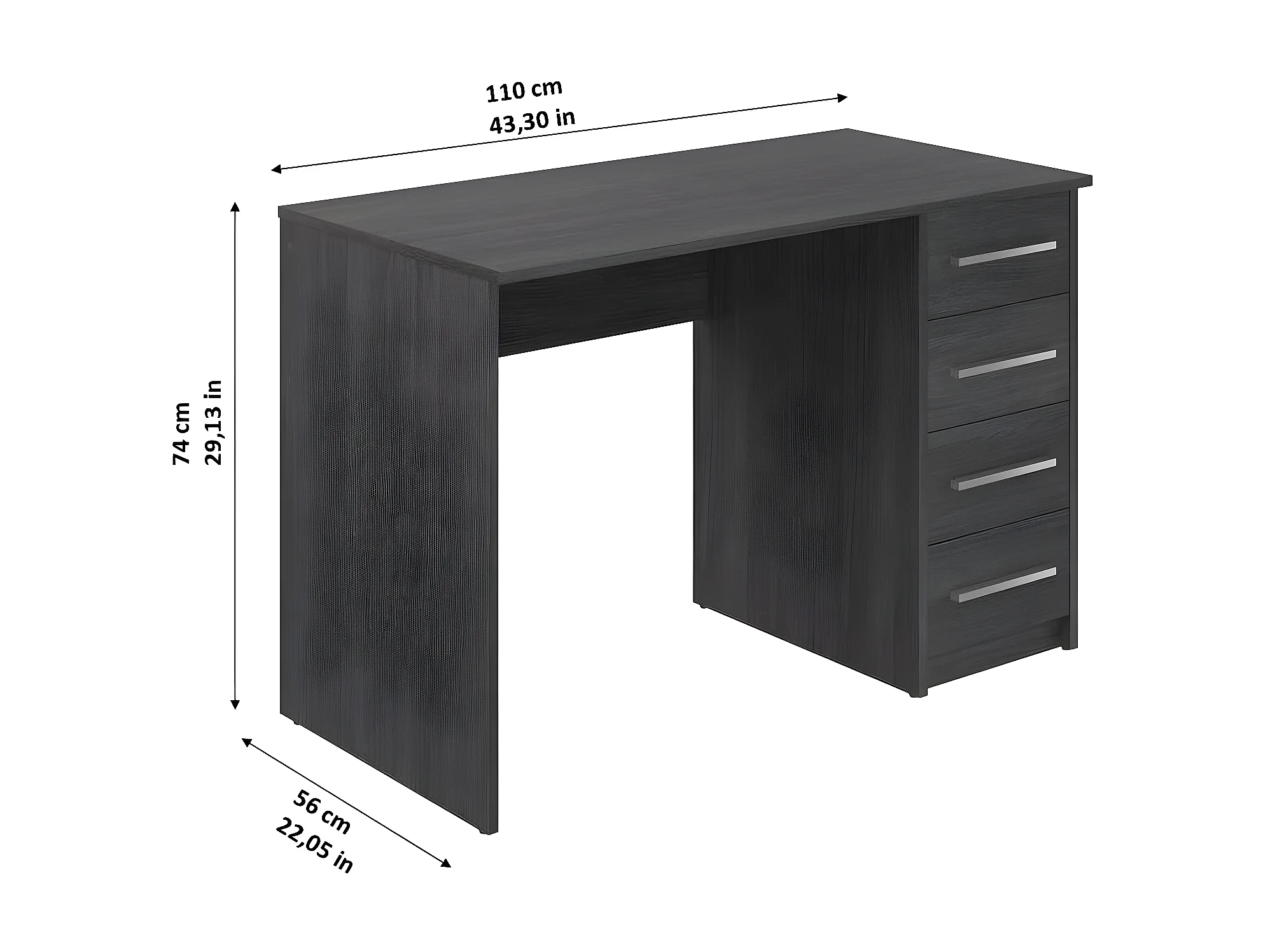 Bureau SAME 4 tiroirs 110x56x74 cm chêne gris cendré TALESA