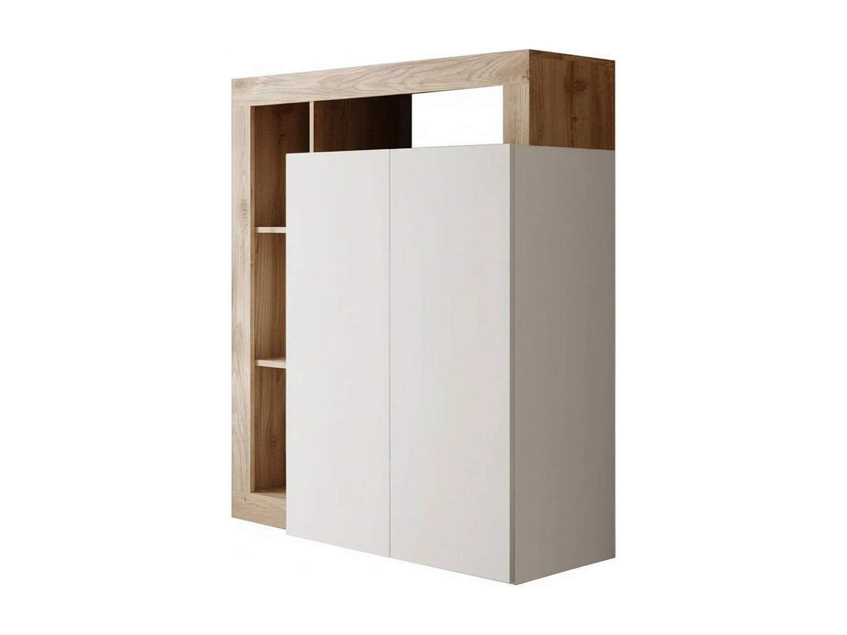 Bureau secrétaire 2 portes contemporain blanc laqué et aspect bois finition Cadiz - ARTURO