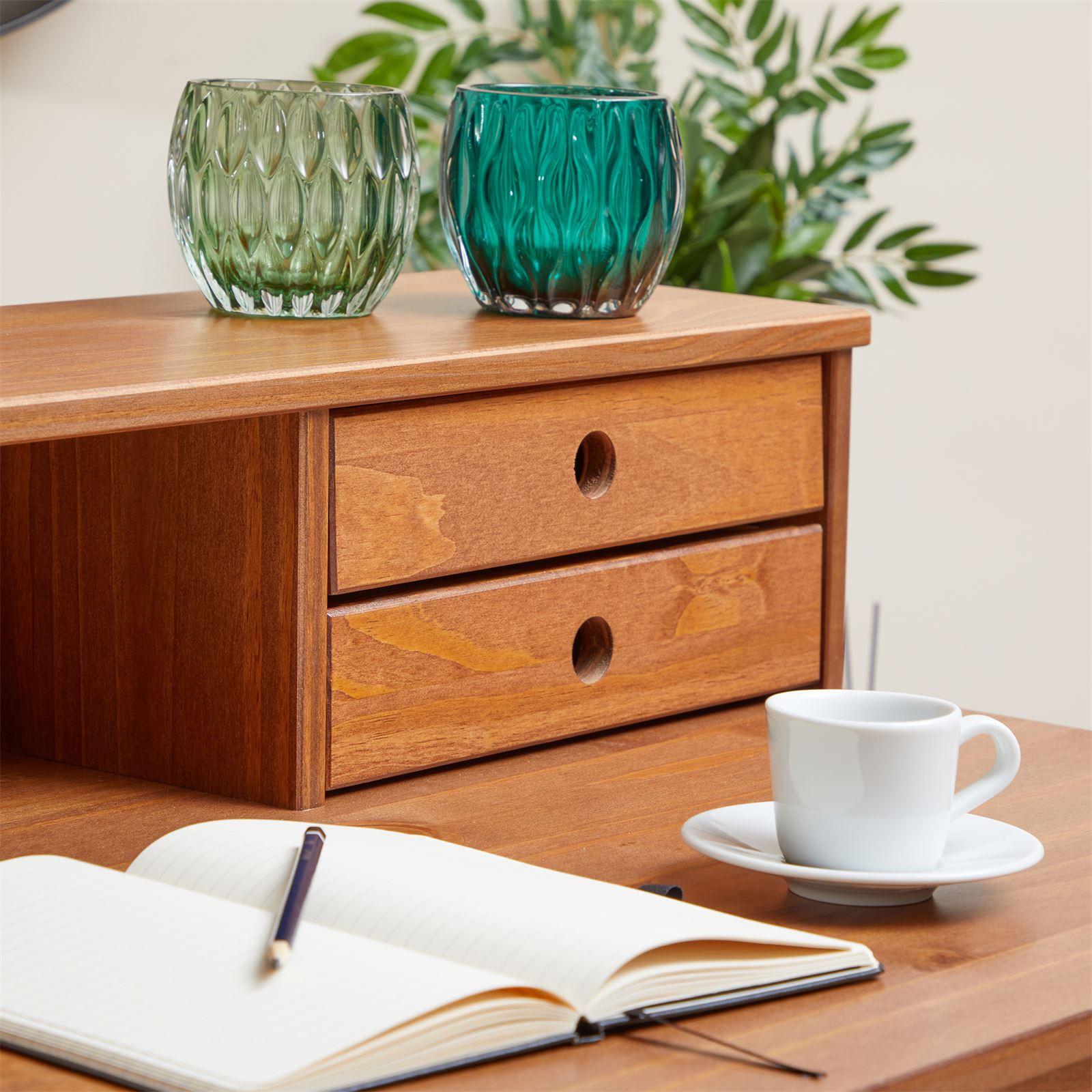 Bureau secrétaire MILANO en pin massif avec 4 tiroirs et 1 niche, bois lasuré brun foncé