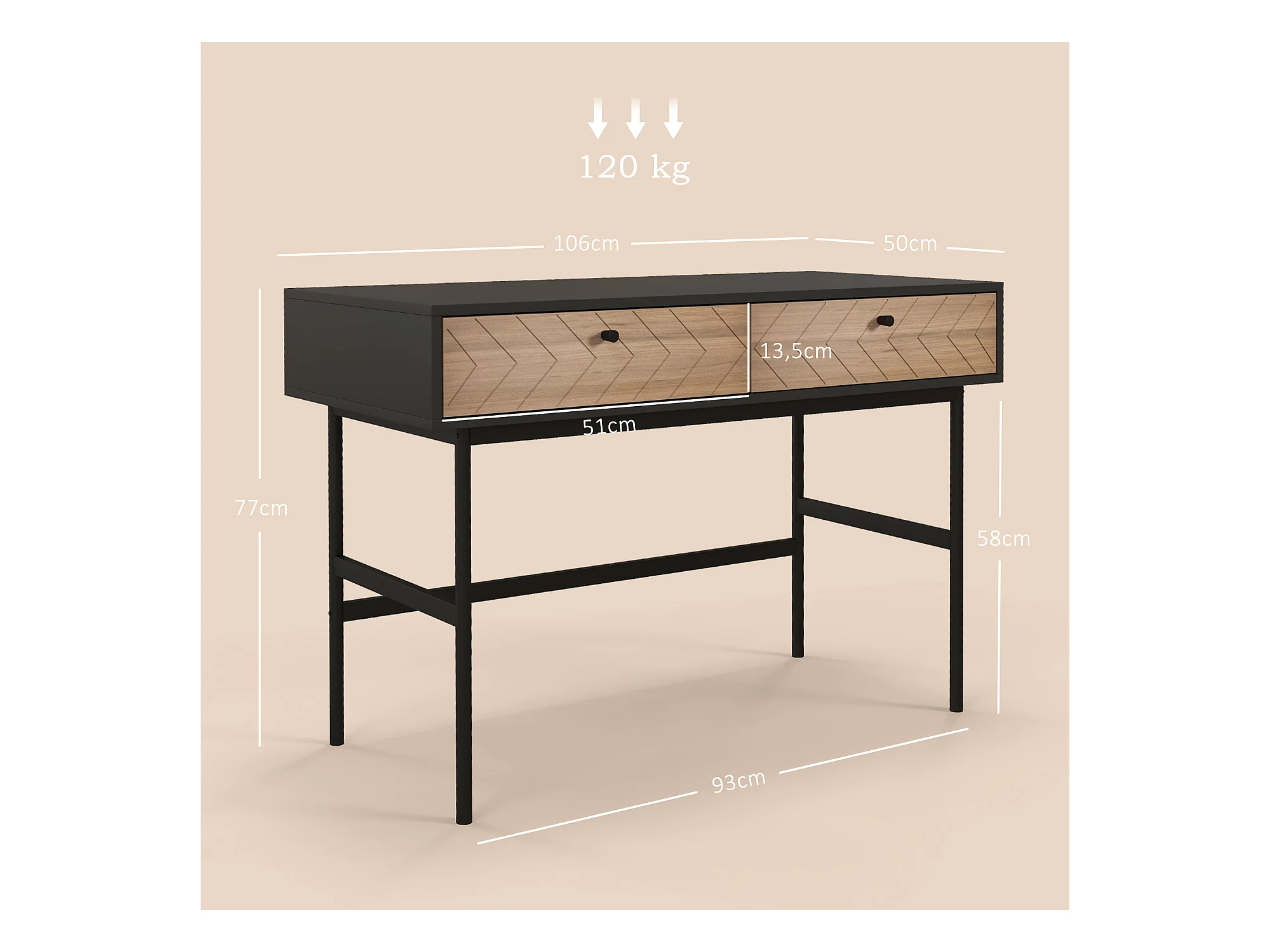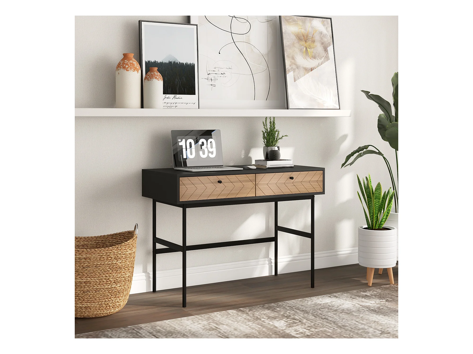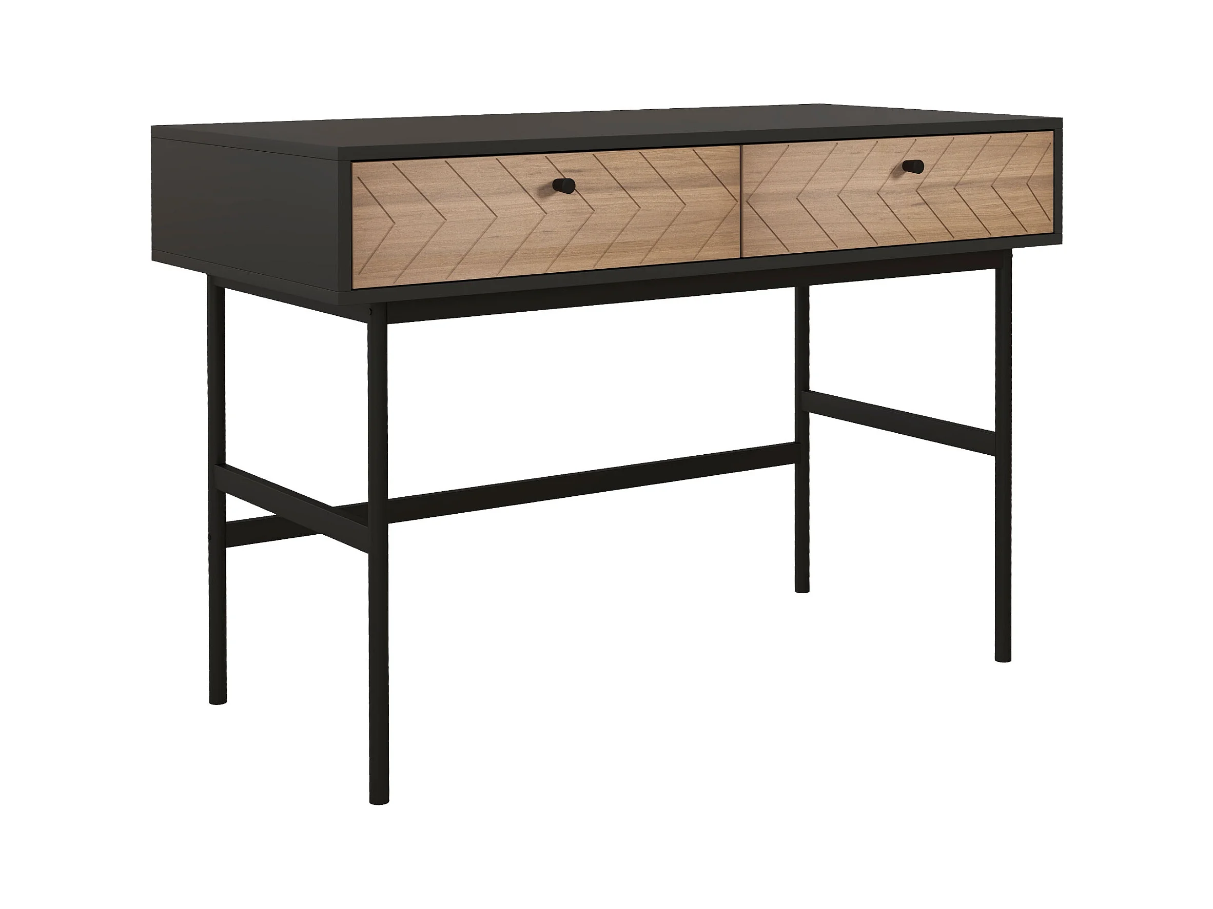 Bureau secrétaire style graphique - 2 tiroirs façades chevrons - acier noir aspect bois