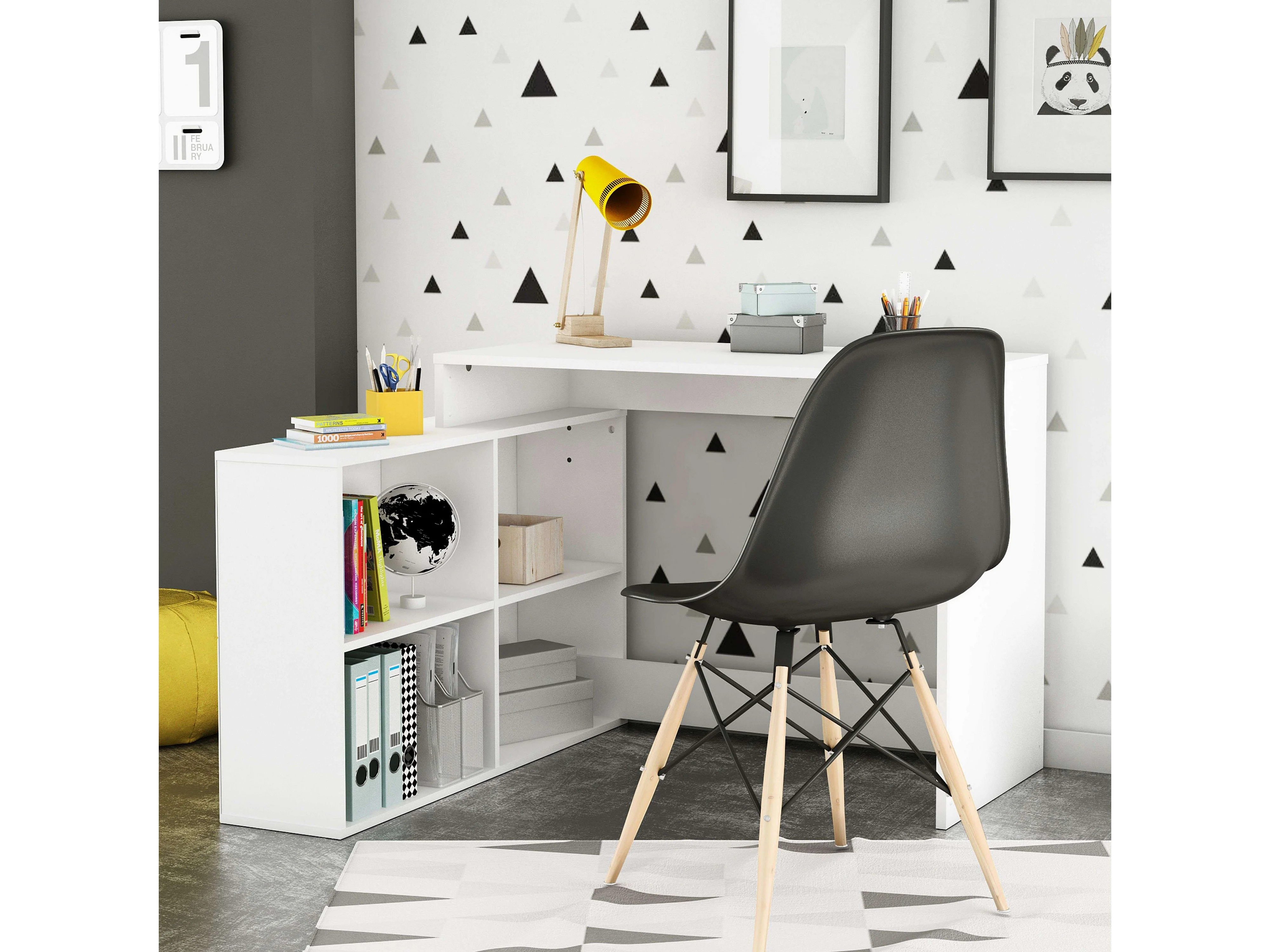 Bureau Ashe, 3 étagères, mélaminé blanc, 149x76x63 cm