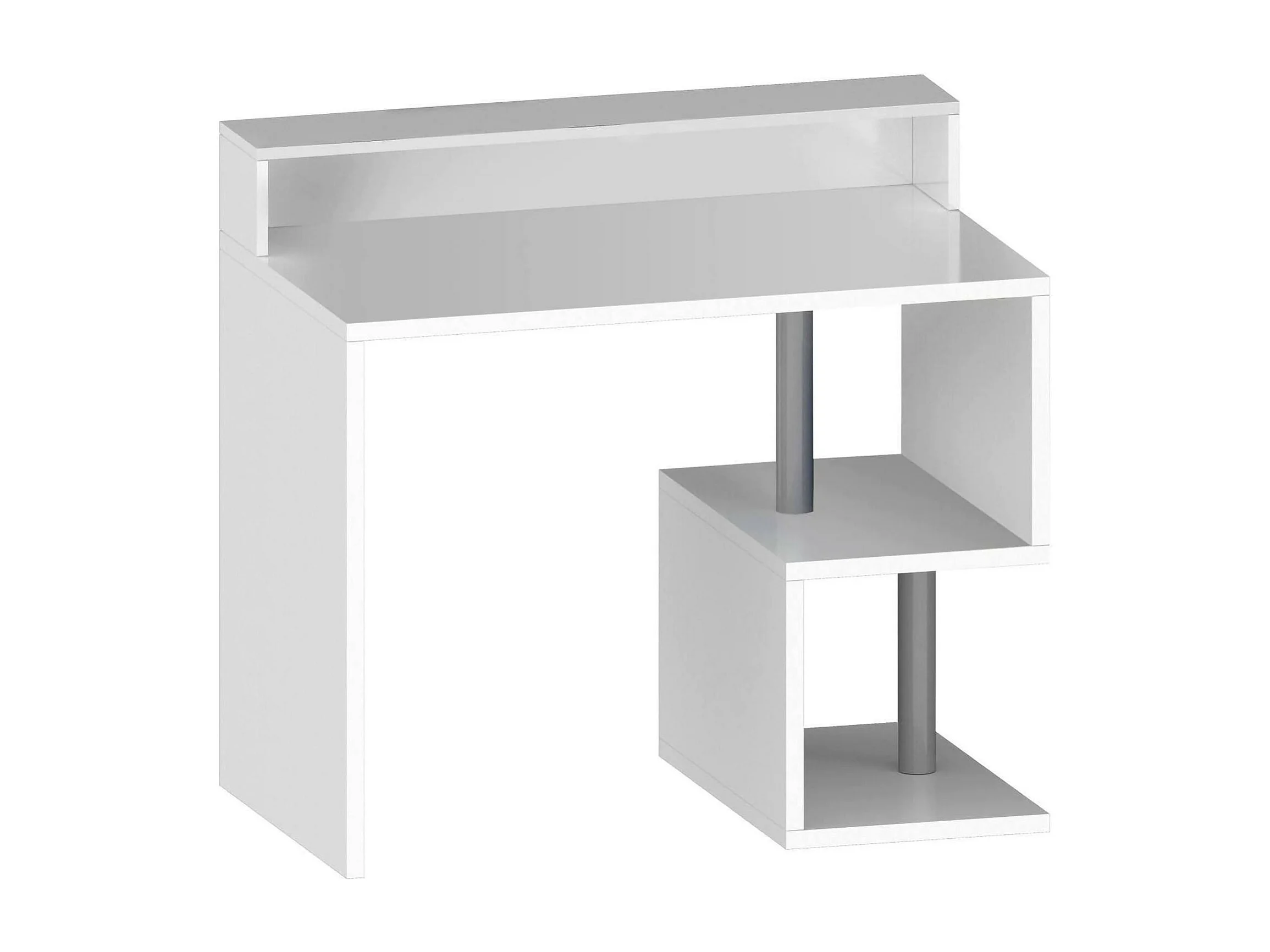Bureau Silvio, Bureau linéaire avec étagères de rangement, Bureau polyvalent avec plateau, 100x50h93 cm, Blanc