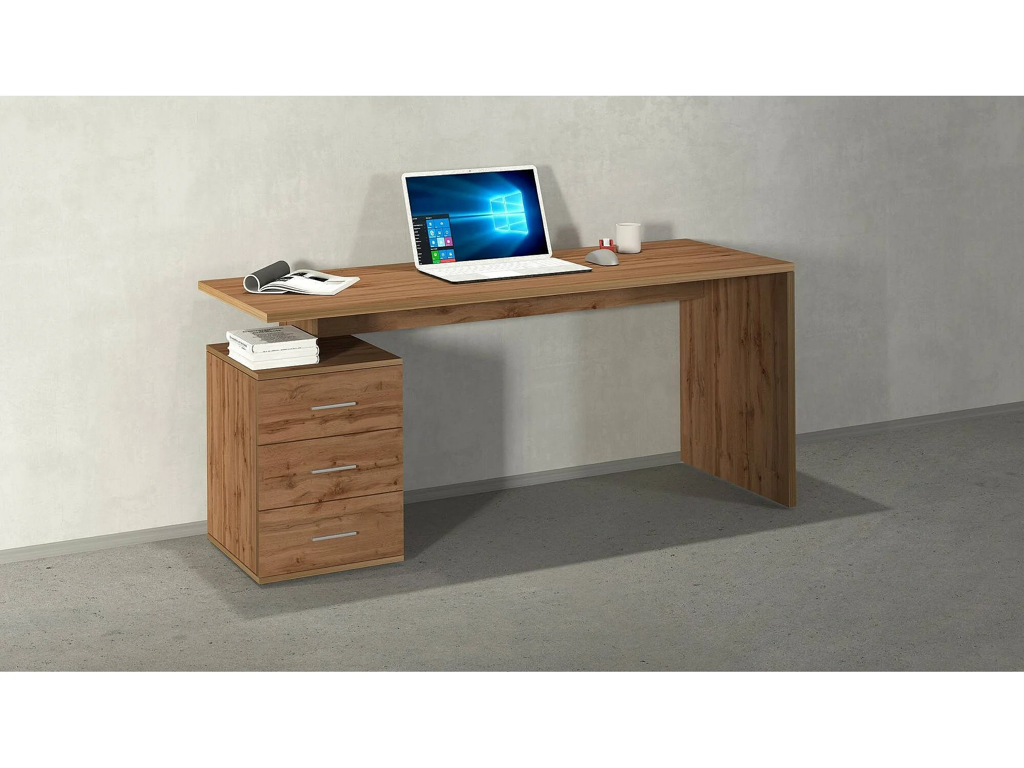 Bureau Siro, Bureau linéaire, Bureau polyvalent, Bureau multiposition gain de place, 160x60h75 cm, Chêne