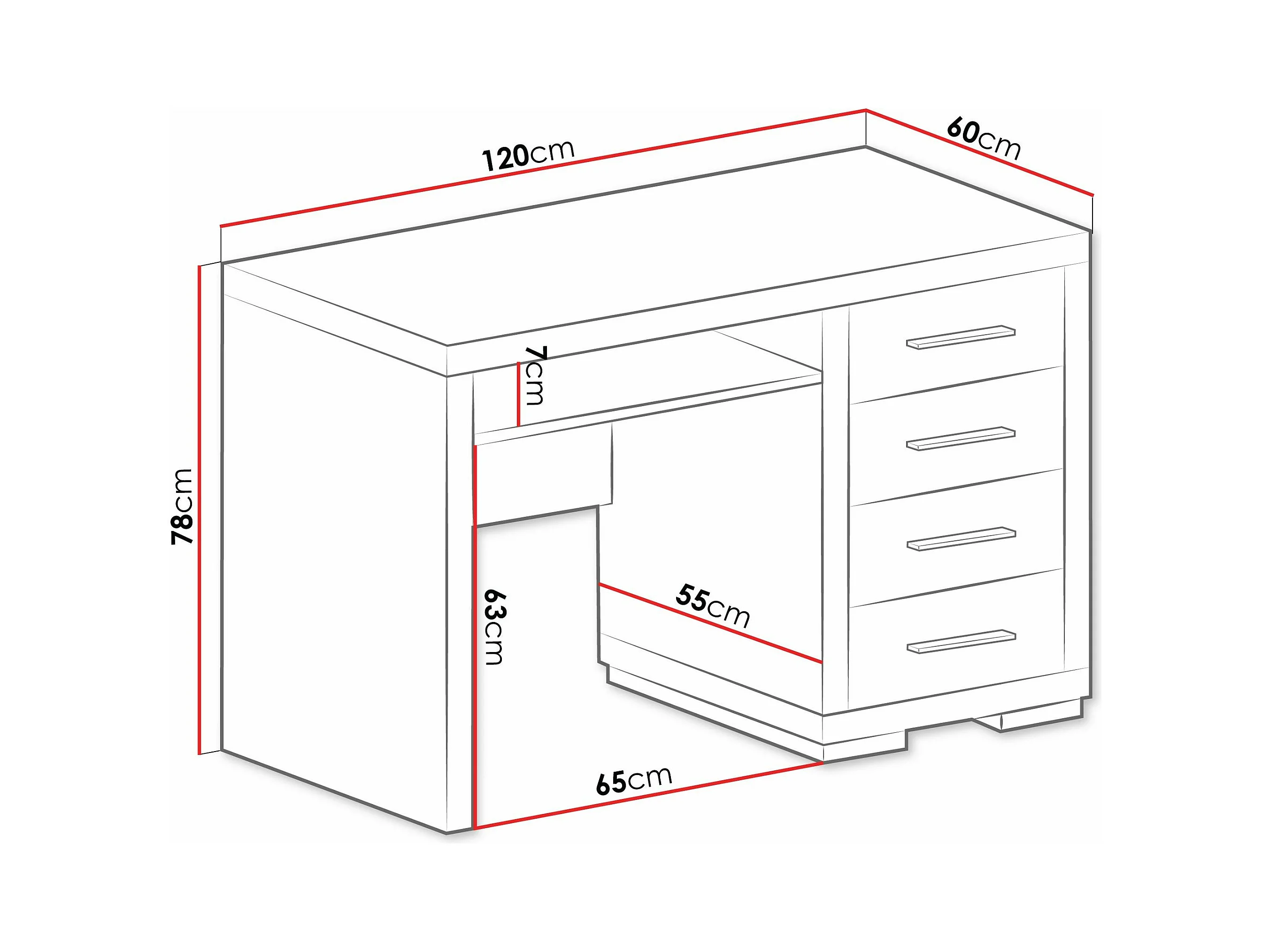 Bureau Fiomeri 120, Avec tiroirs|Étagère à clavier, Nombre de tiroirs: 4, 78x120x60cm