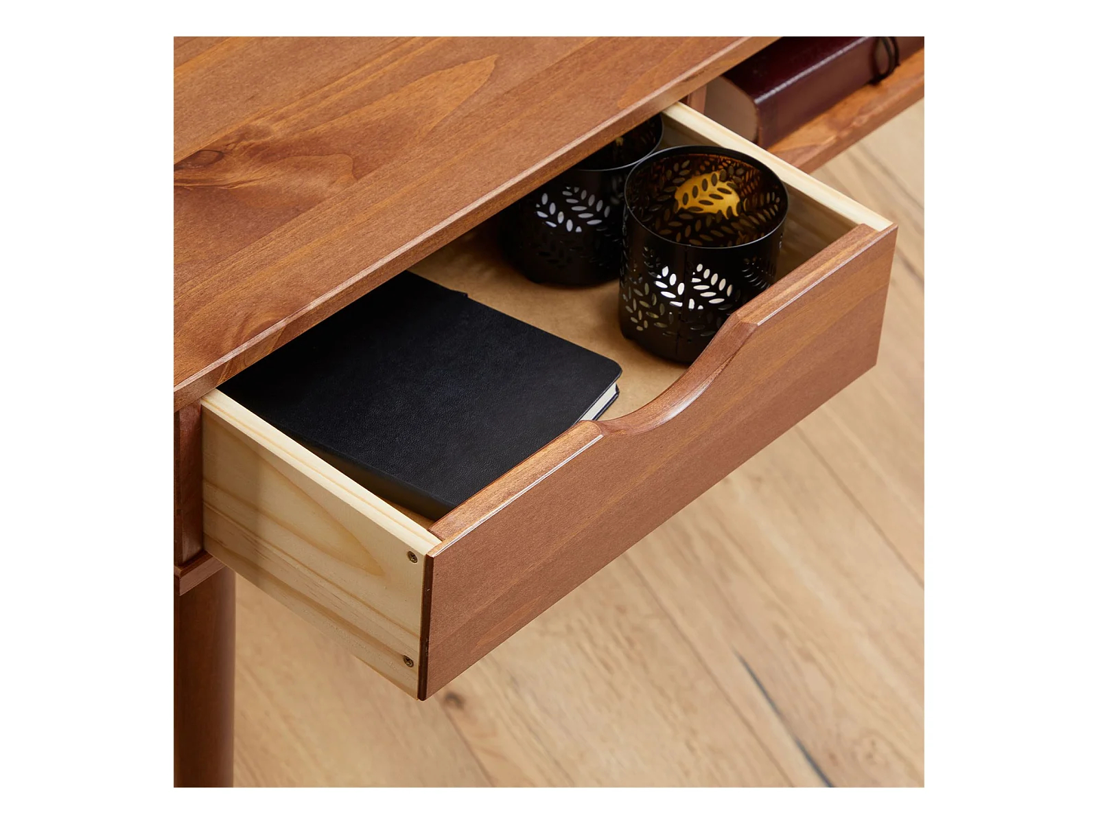 Bureau STEFANO en pin massif avec 2 tiroirs et 1 niche intégrée lasuré brun foncé