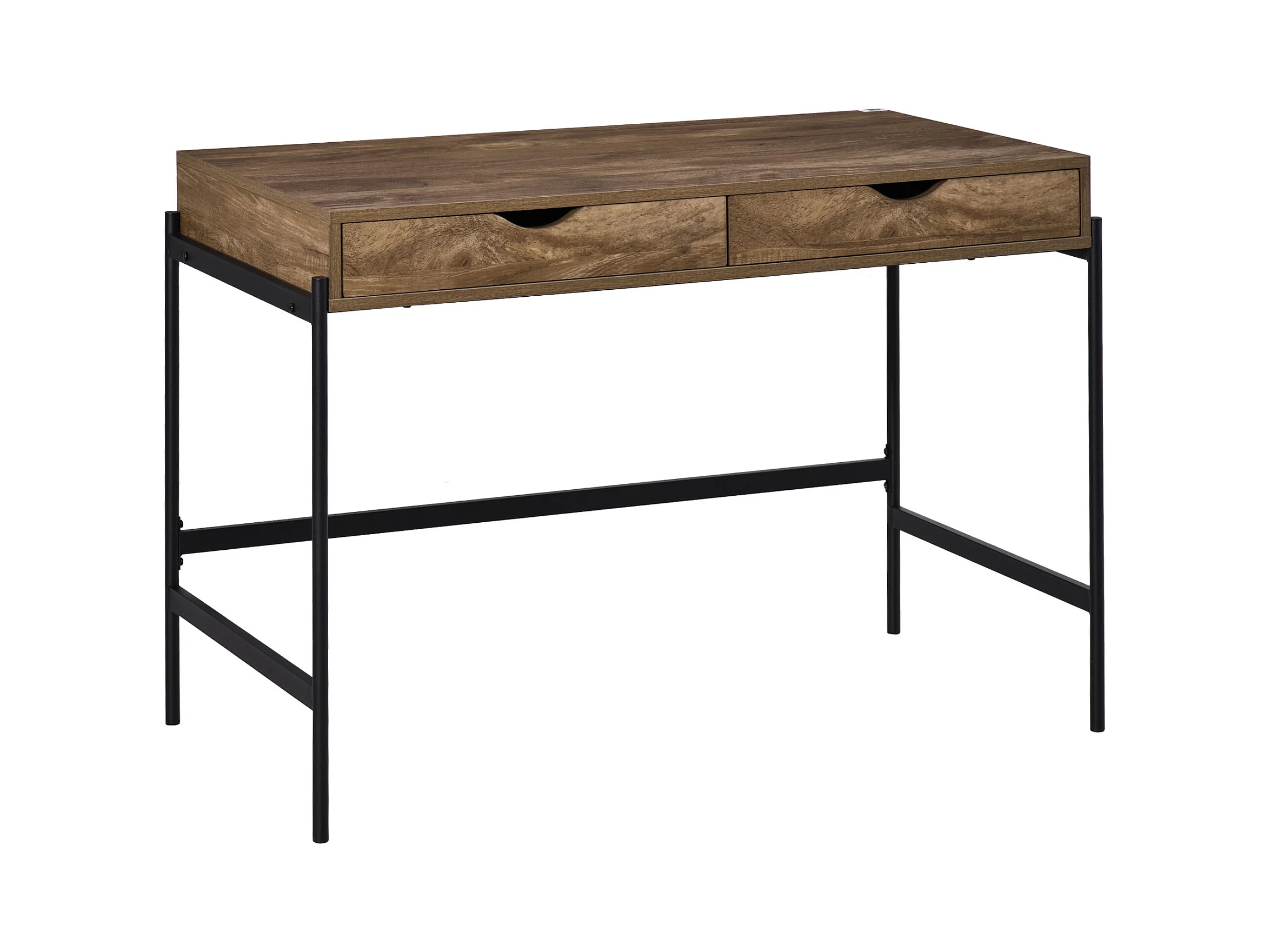 Bureau style industriel dim. 110L x 55l x 75H cm cm tiroir + 2 tiroirs piètement métal noir plateau MDF aspect bois