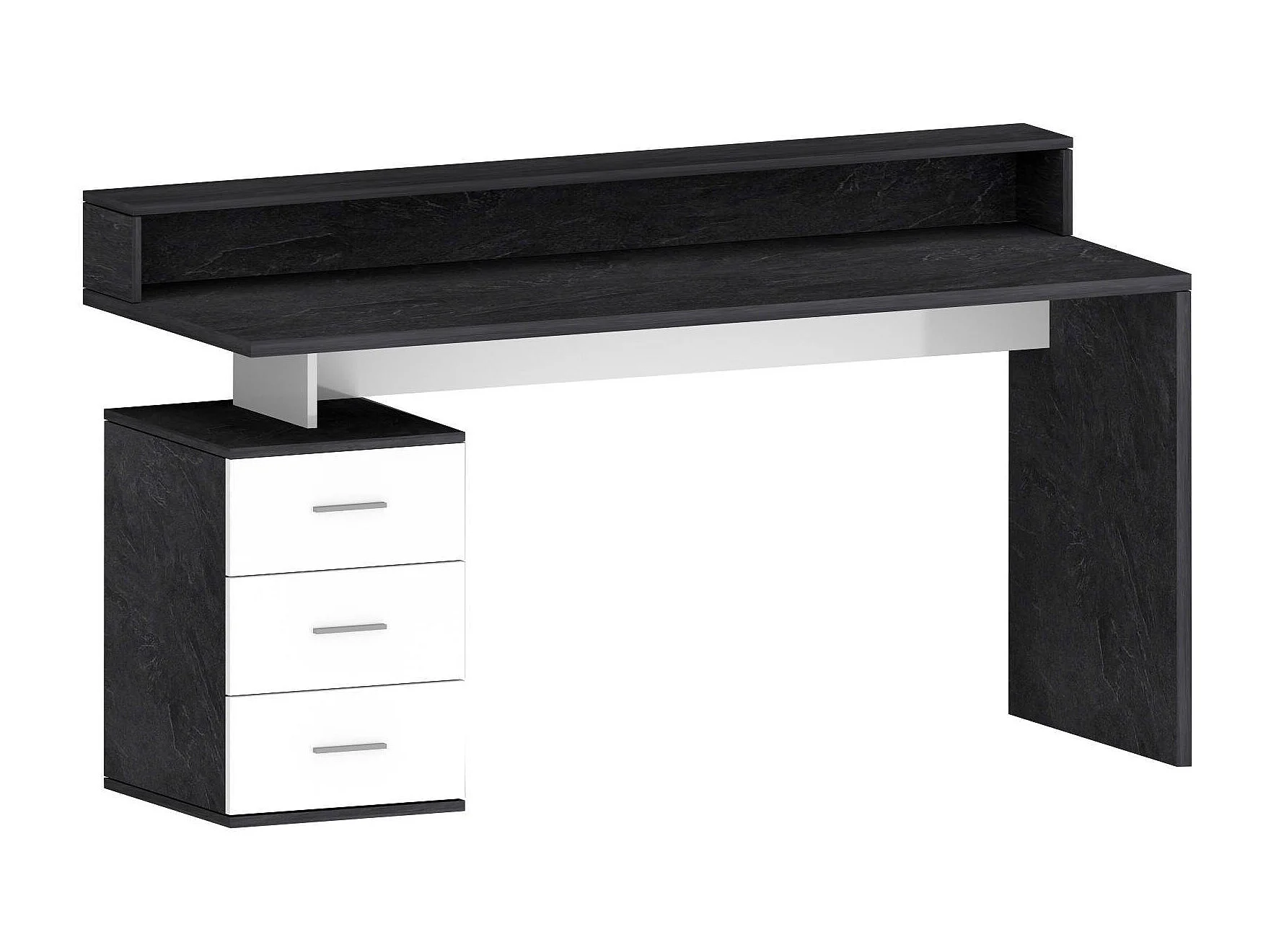 Bureau Svevo, Bureau avec plateau, Bureau polyvalent, Bureau gain de place multi-positions, 160x60h90 cm, Blanc et Ardoise