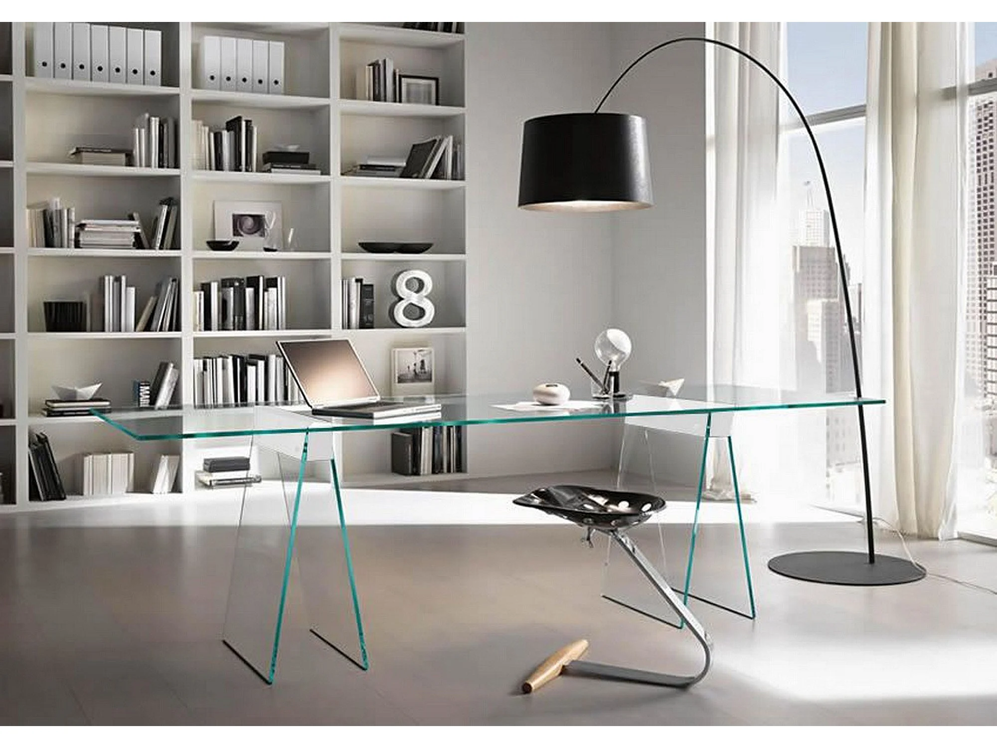 Bureau Tarazona, Bureau linéaire, Bureau polyvalent, Bureau fixe peu encombrant, 180x90h75 cm, Transparent