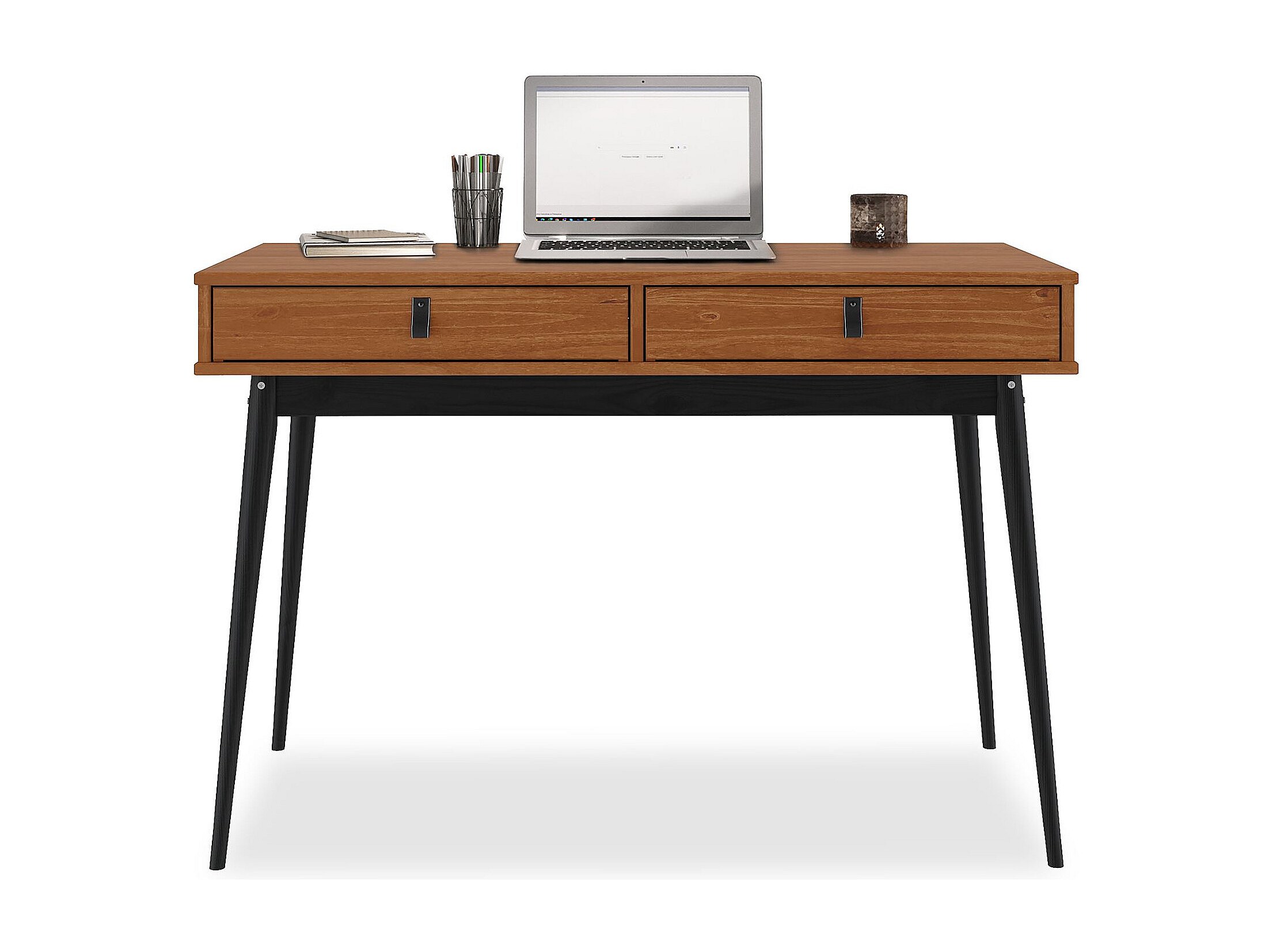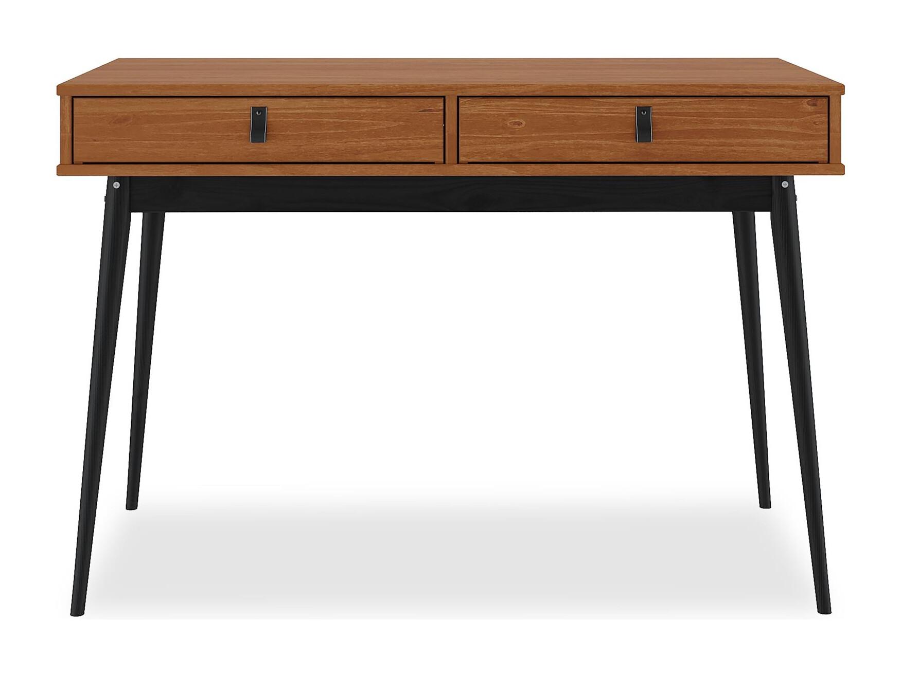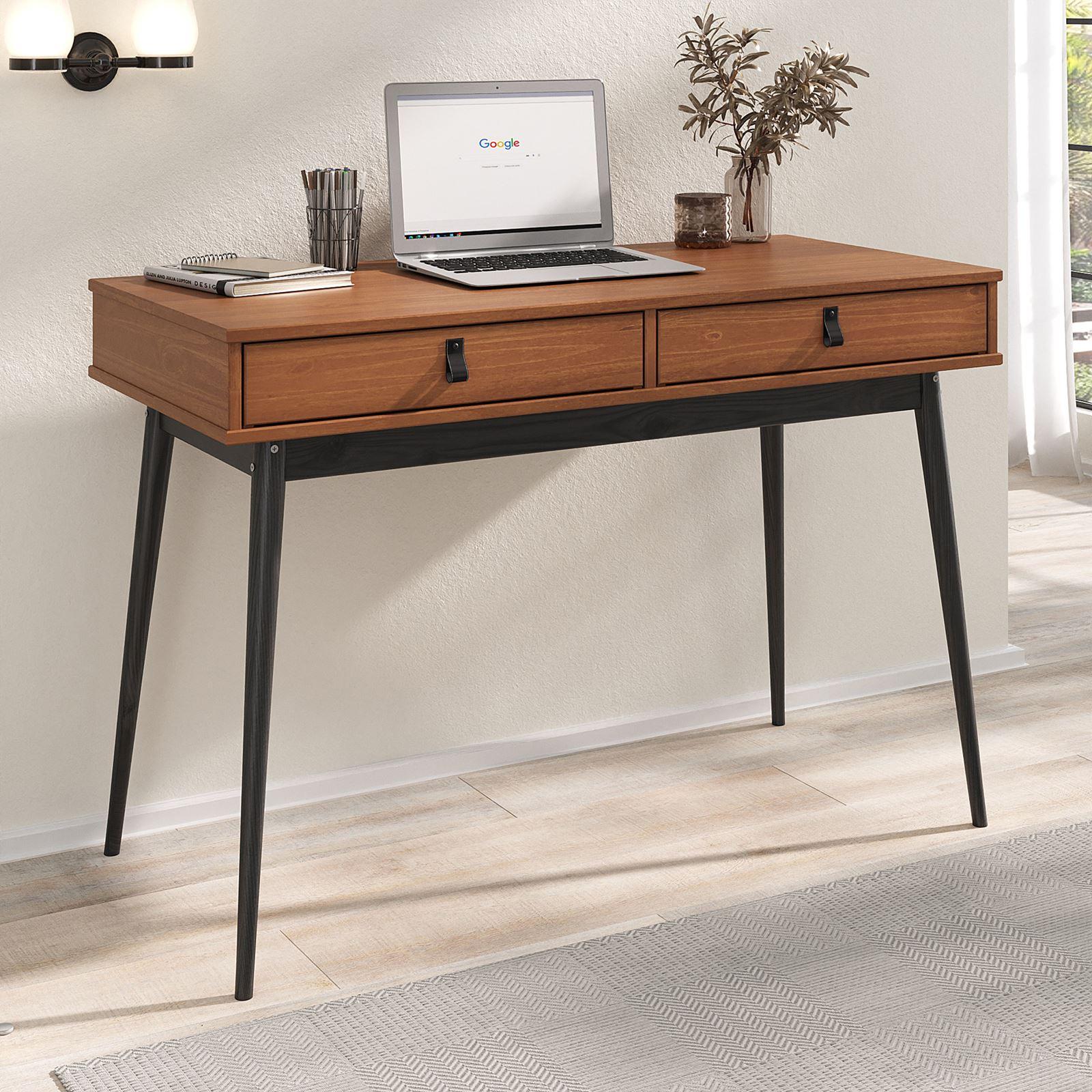 Bureau WANDA avec 2 tiroirs, en pin massif, Bureau en bois, Coloris châtaignier et noir