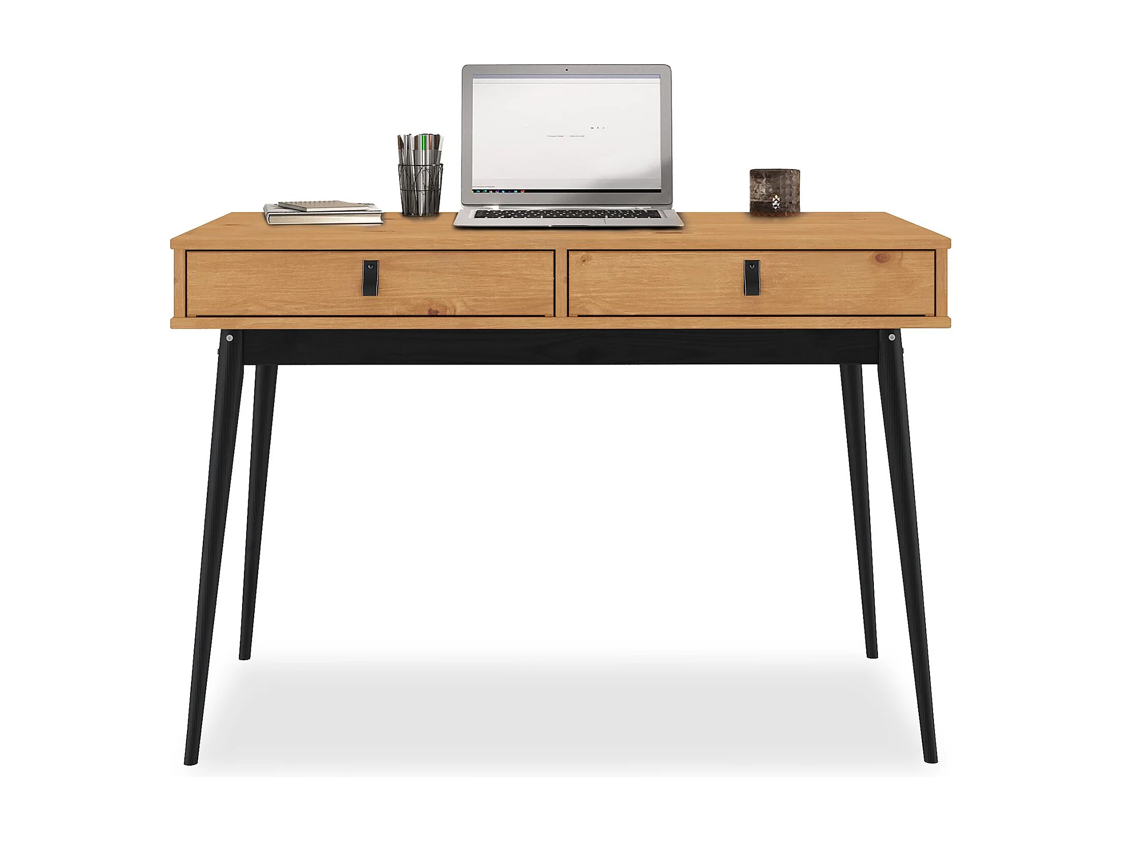 Bureau WANDA avec 2 tiroirs, en pin massif, Bureau en bois, Coloris chêne et noir