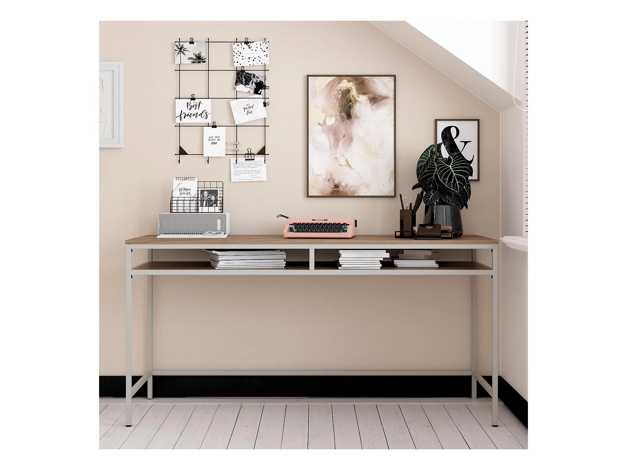 Bradford | Bureau en effet noyer avec cadre en métal gris