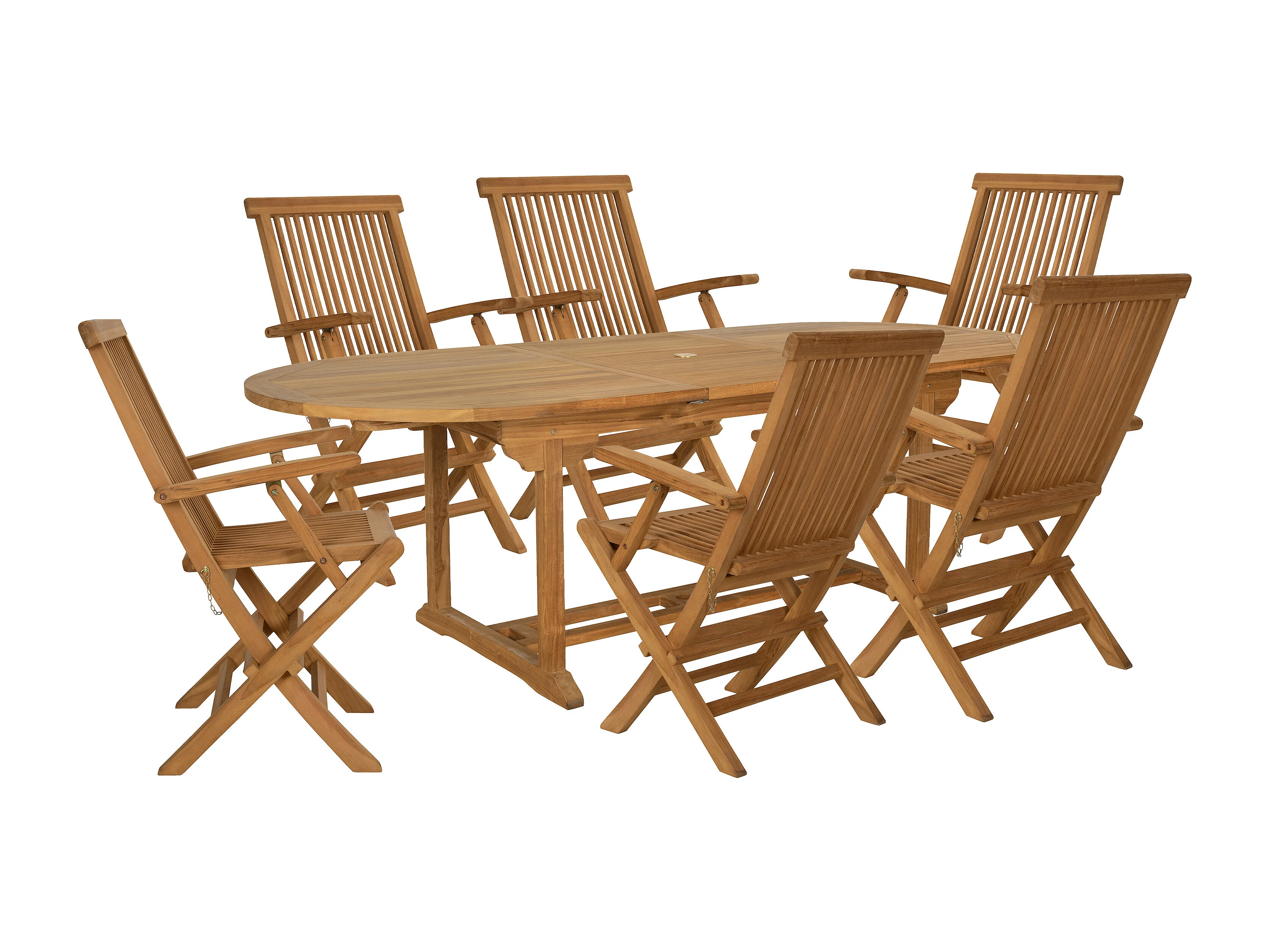 Salle à manger de jardin en teck : une table extensible L.180 / 240 cm et 6 fauteuils pliants - Naturel clair - BYBLOS II de MYLIA