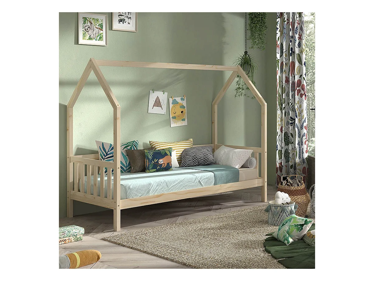 CABANON - Lit Cabane avec Barrières 90x200cm en Pin Massif Naturel