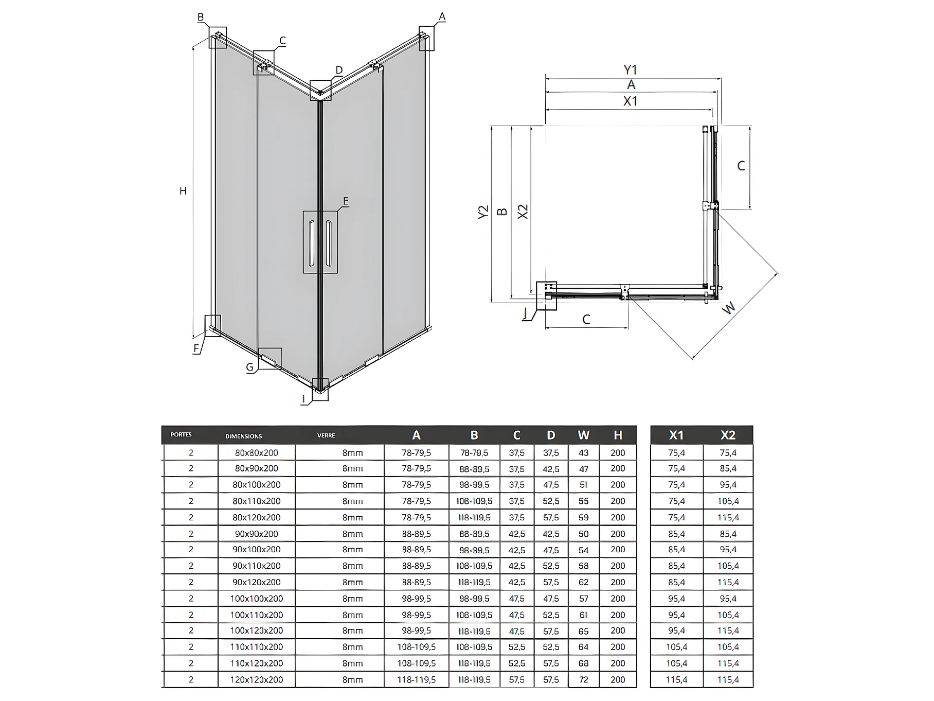 Cabine de douche 100x100 cm,coulissante CANARIES NOIR, noir, acces d'angle
