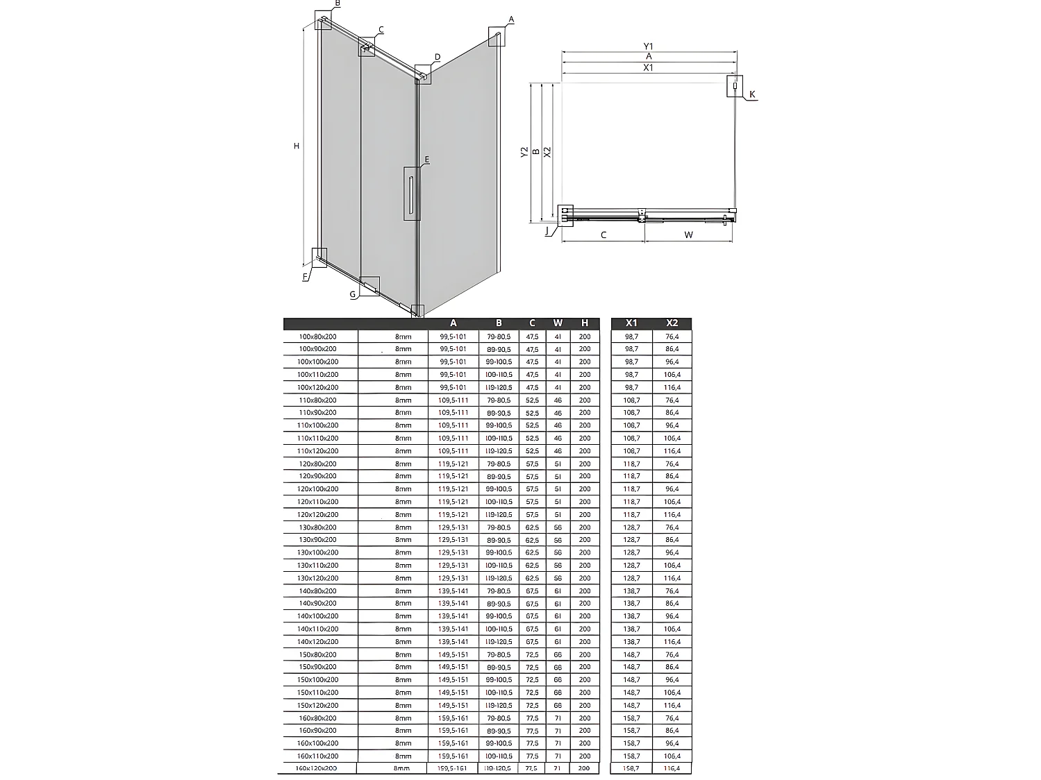 Cabine de douche 120x90cm coulissante CANARIES NOIR, noir, acces de face