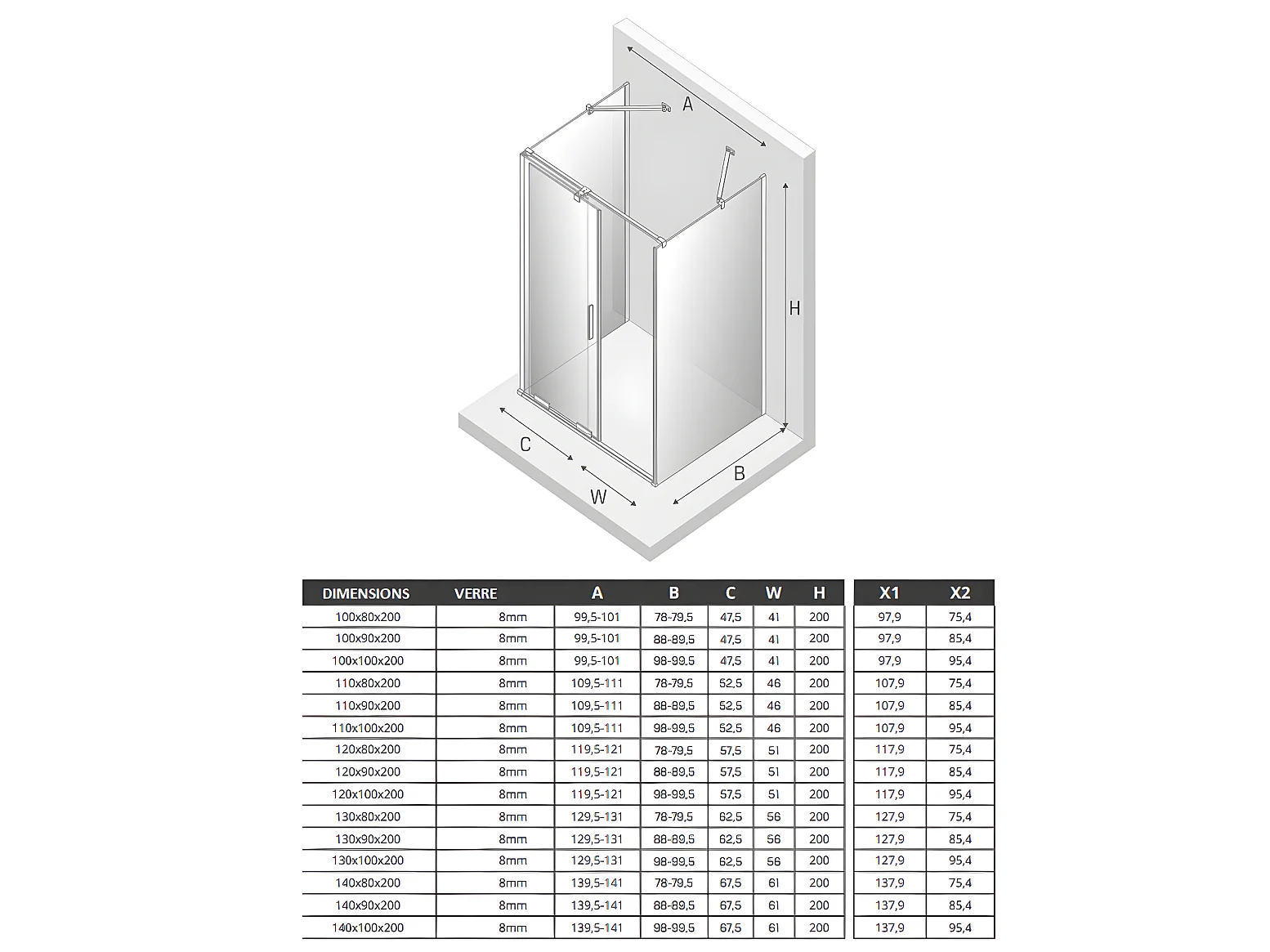 Cabine de douche 130x90 coulissante dorée HAWAII GOLD, accès de face