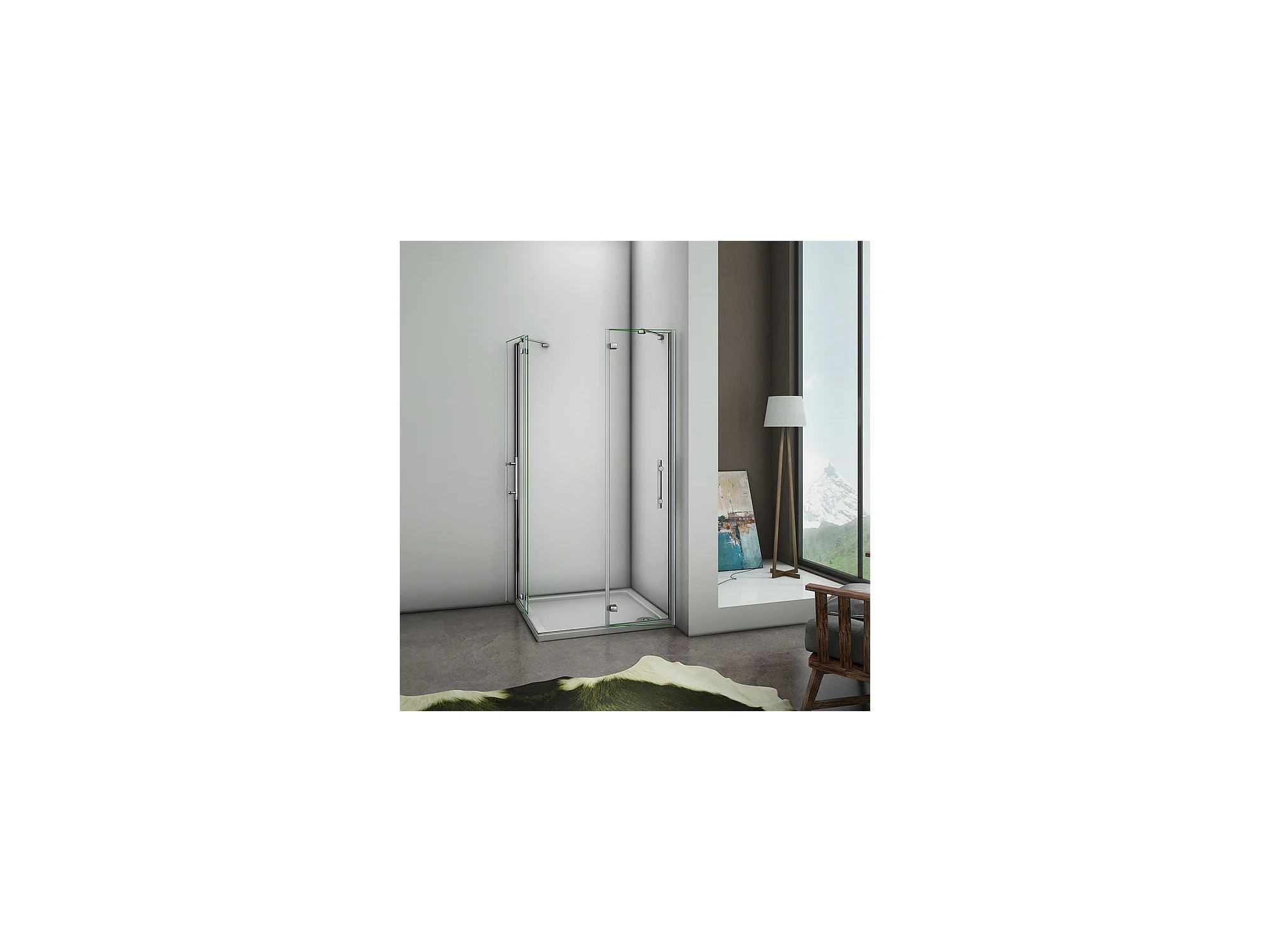 Cabine de douche battante 100x80x185cm en 6mm verre securit anticalcaire, porte de douche pivotante avec petite barre fixée d'angle