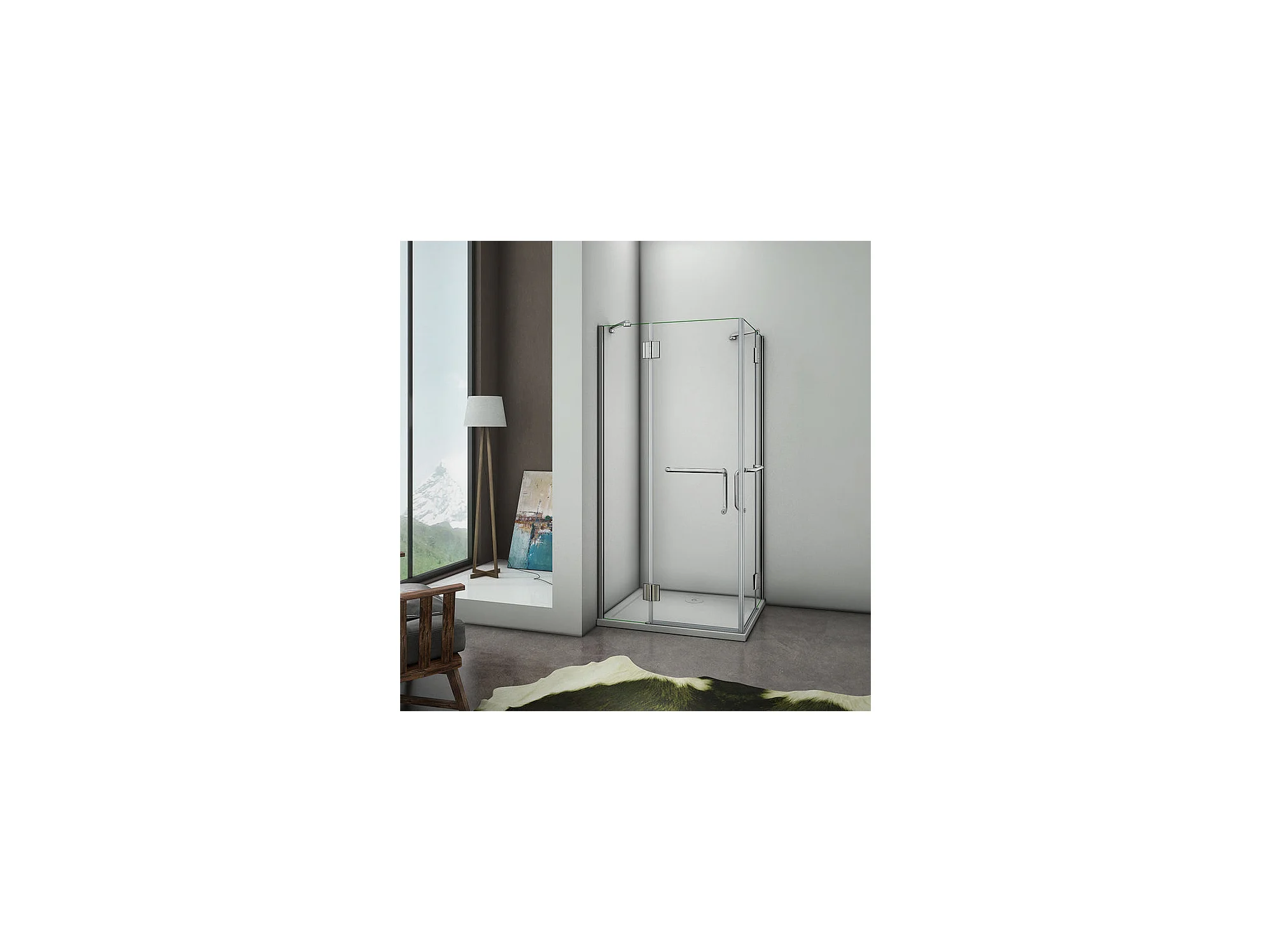 Cabine de douche battante 100x80x190cm porte de douche pivotante à charnière en 8mm verre securit anticalcaire, poignée en inox
