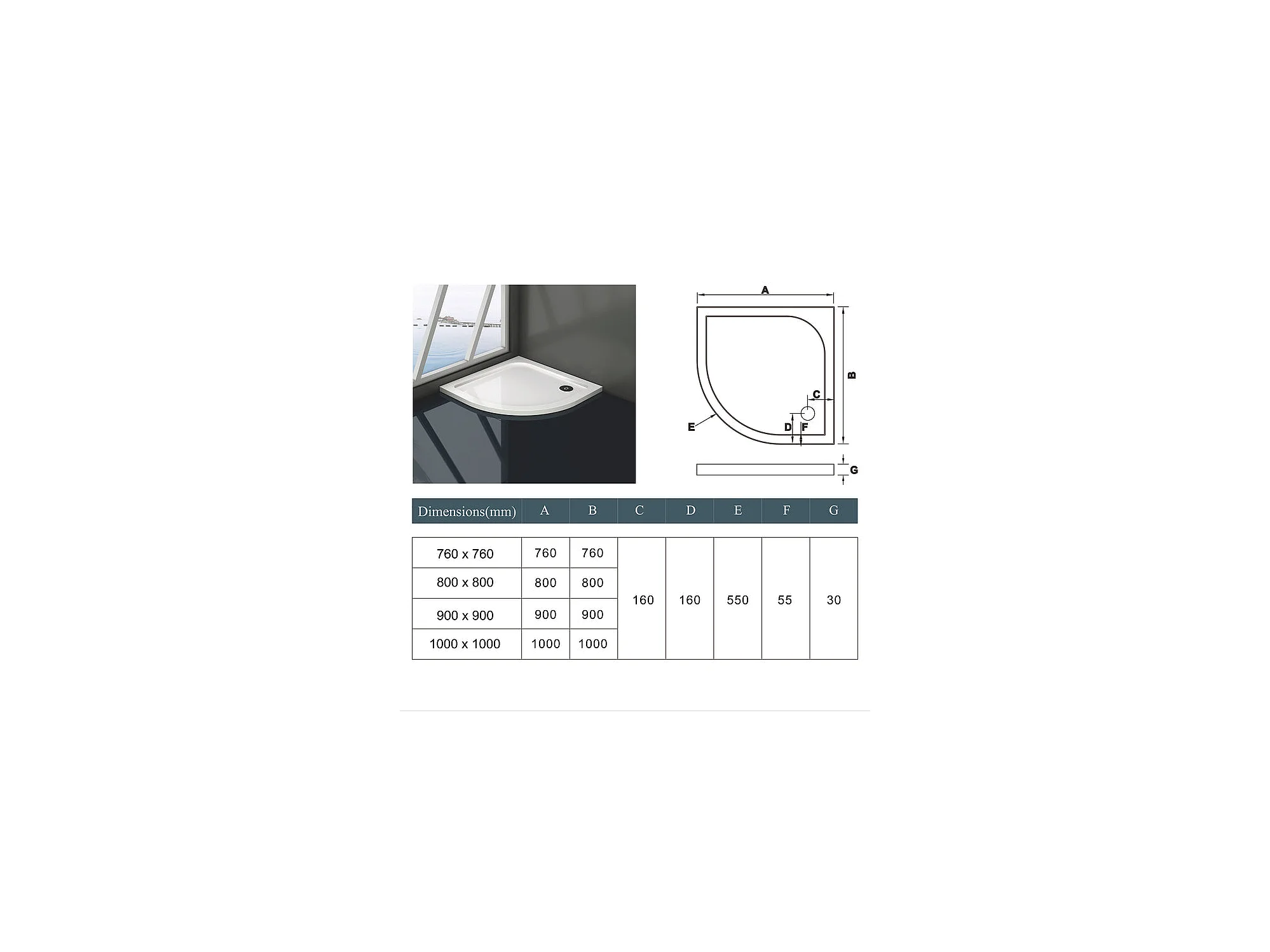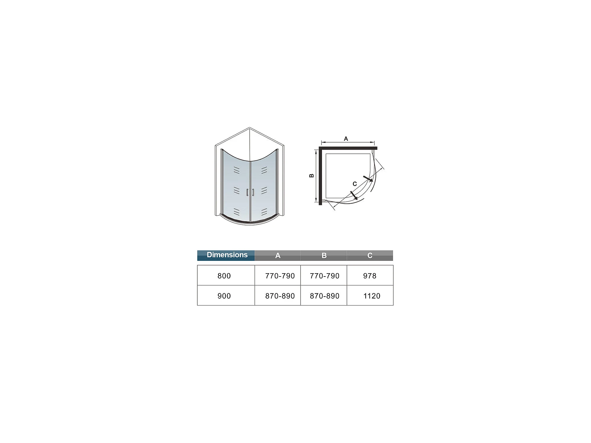 Cabine de douche battante 90x90x195cm avec receveur de douche blanc, cabine de douche 1/4 de cercle en verre anticalcaire
