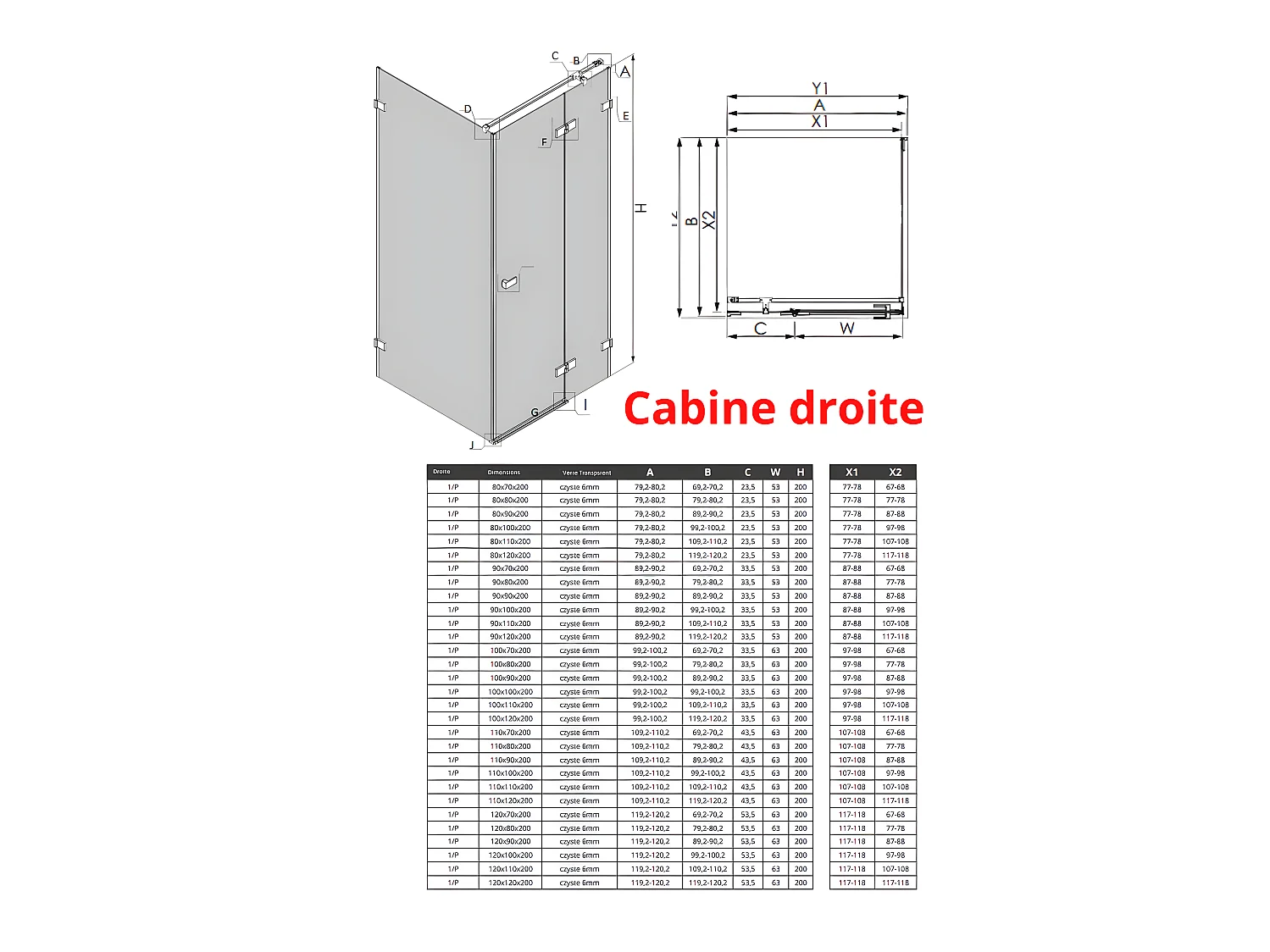 Cabine de douche blanc 100x120cm,pivotante droite SANTORINI WHITE, acces de face