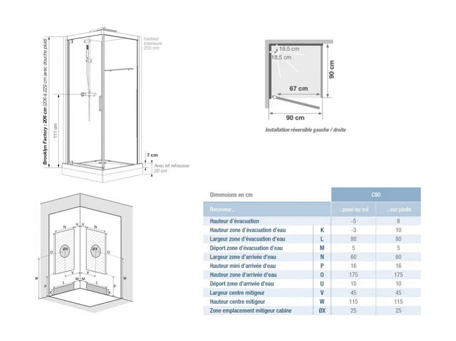 Cabine de douche complète carré Brooklyn factory noire 90
