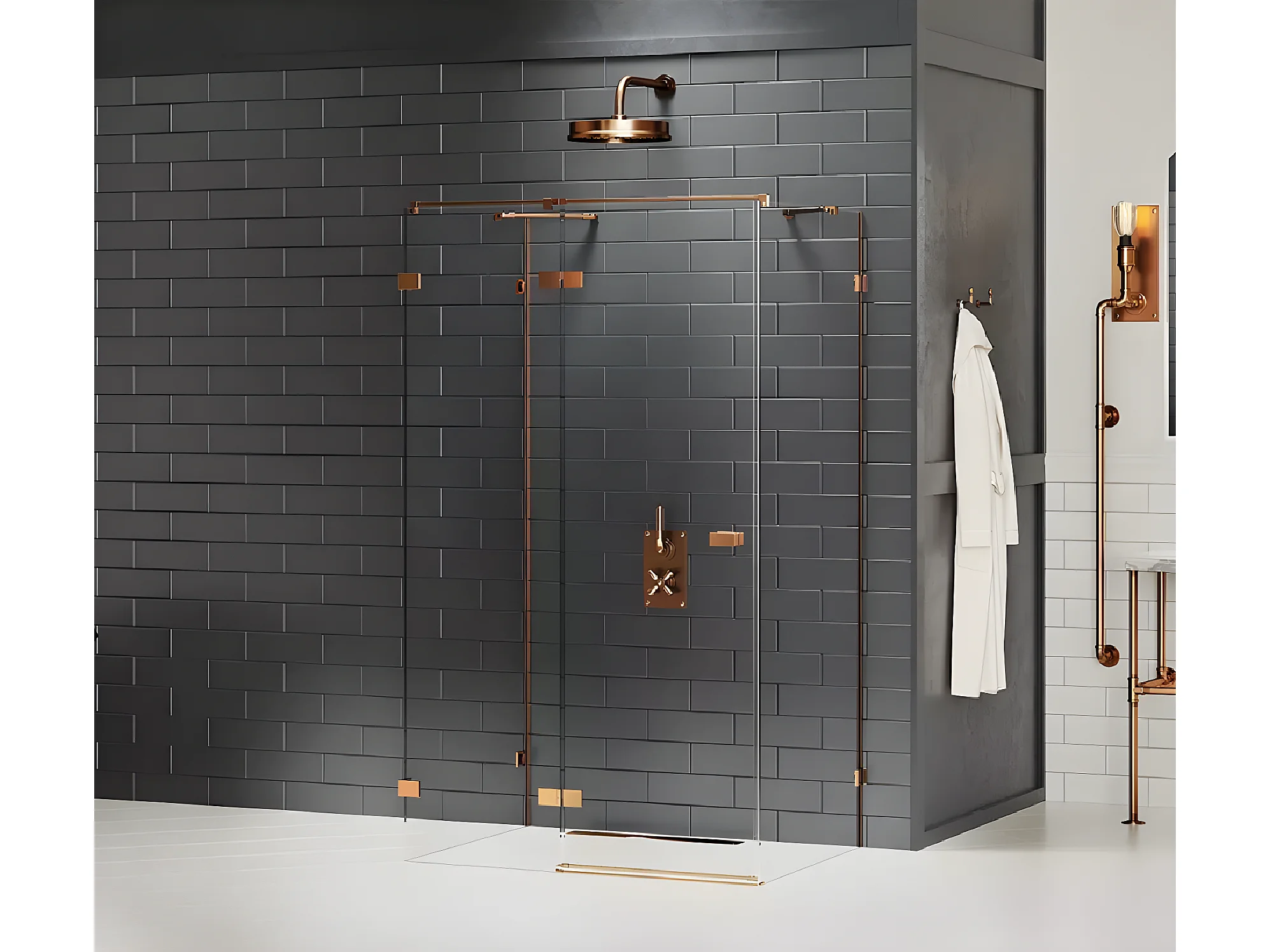 Cabine de douche gauche 80x80 pivotante TAHITI COPPER BRUSHED,couleur: cuivre brossé, accès de face
