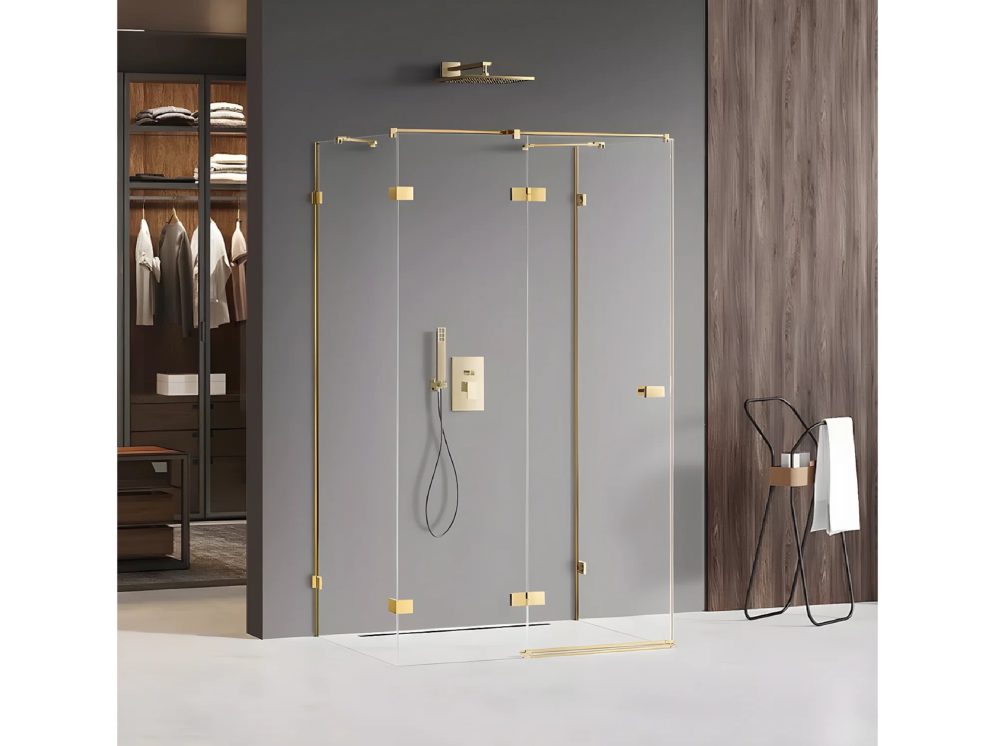Cabine de douche gauche 90x90 pivotante MIAMI GOLD,couleur: doré, accès de face