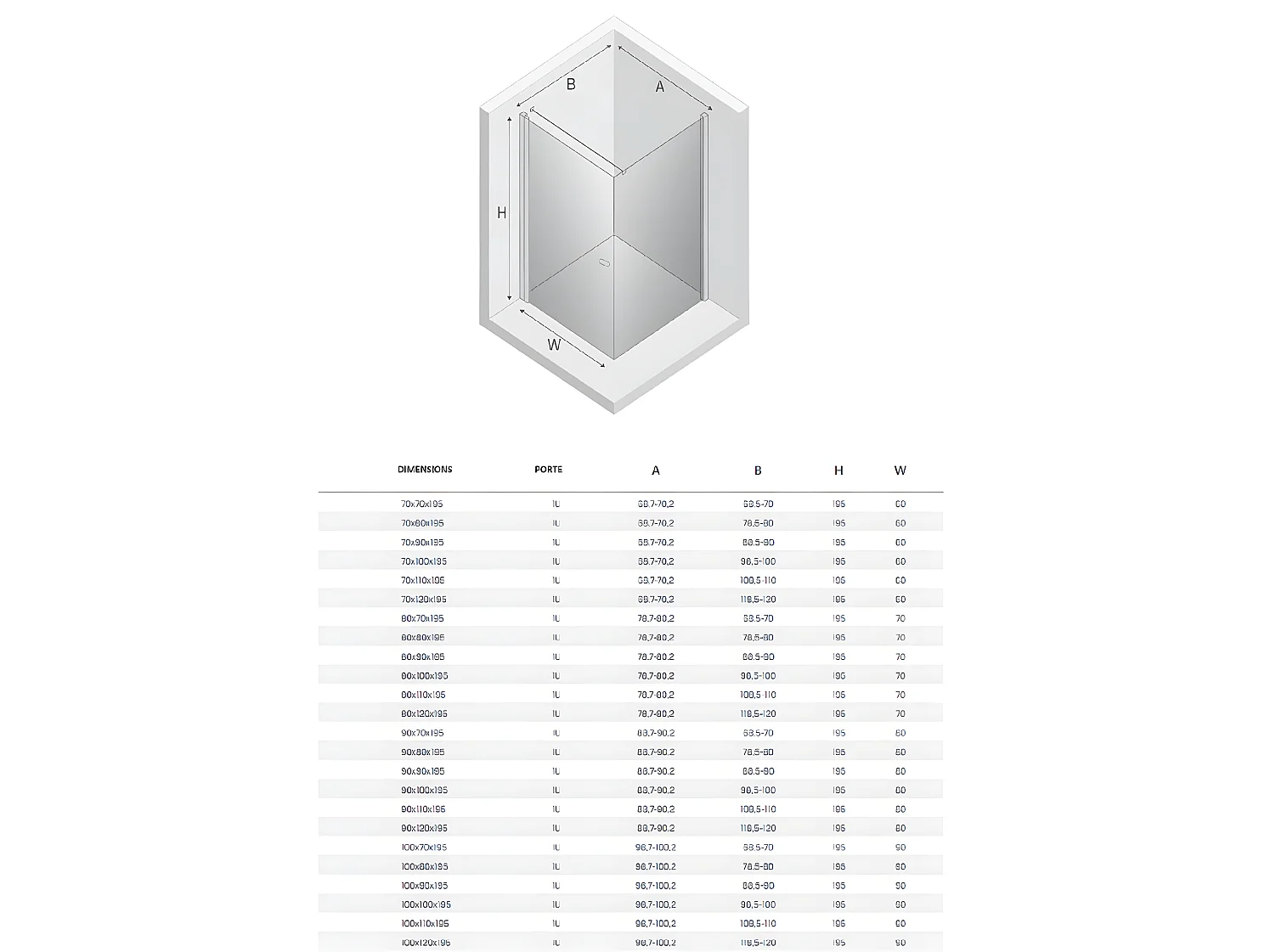 Cabine de douche pivotante 70x100 cm noir RHODES BLACK