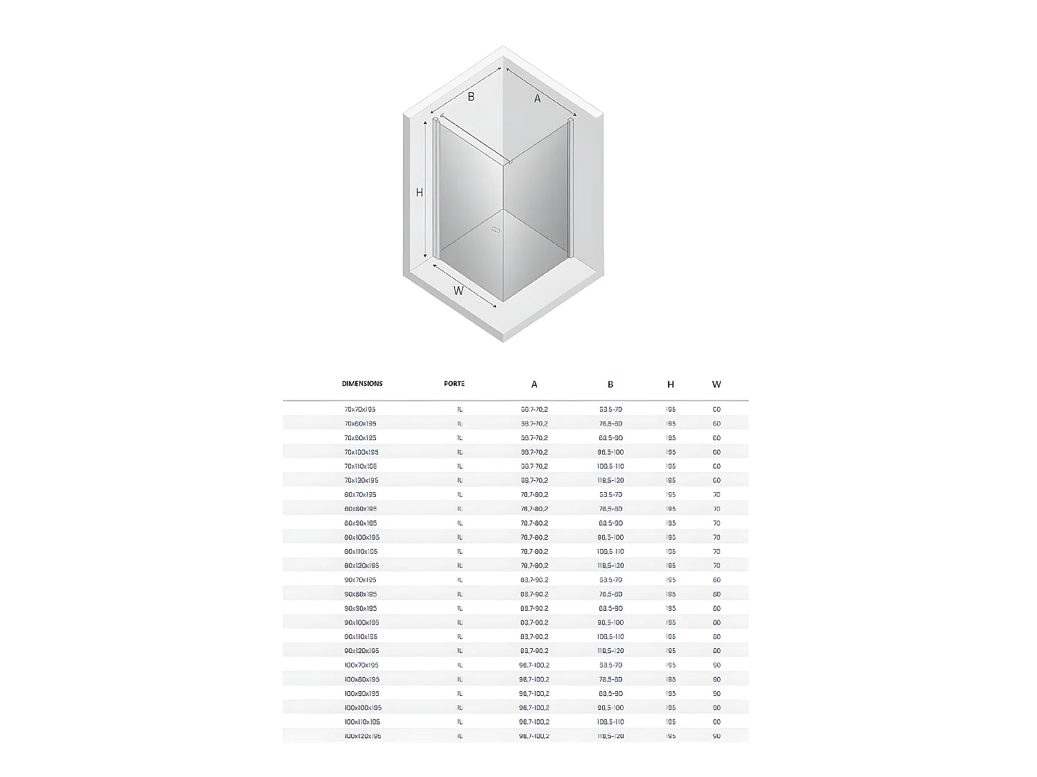 Cabine de douche pivotante 90x70 cm inox brossé ANTILLES GUNMETAL BRUSHED