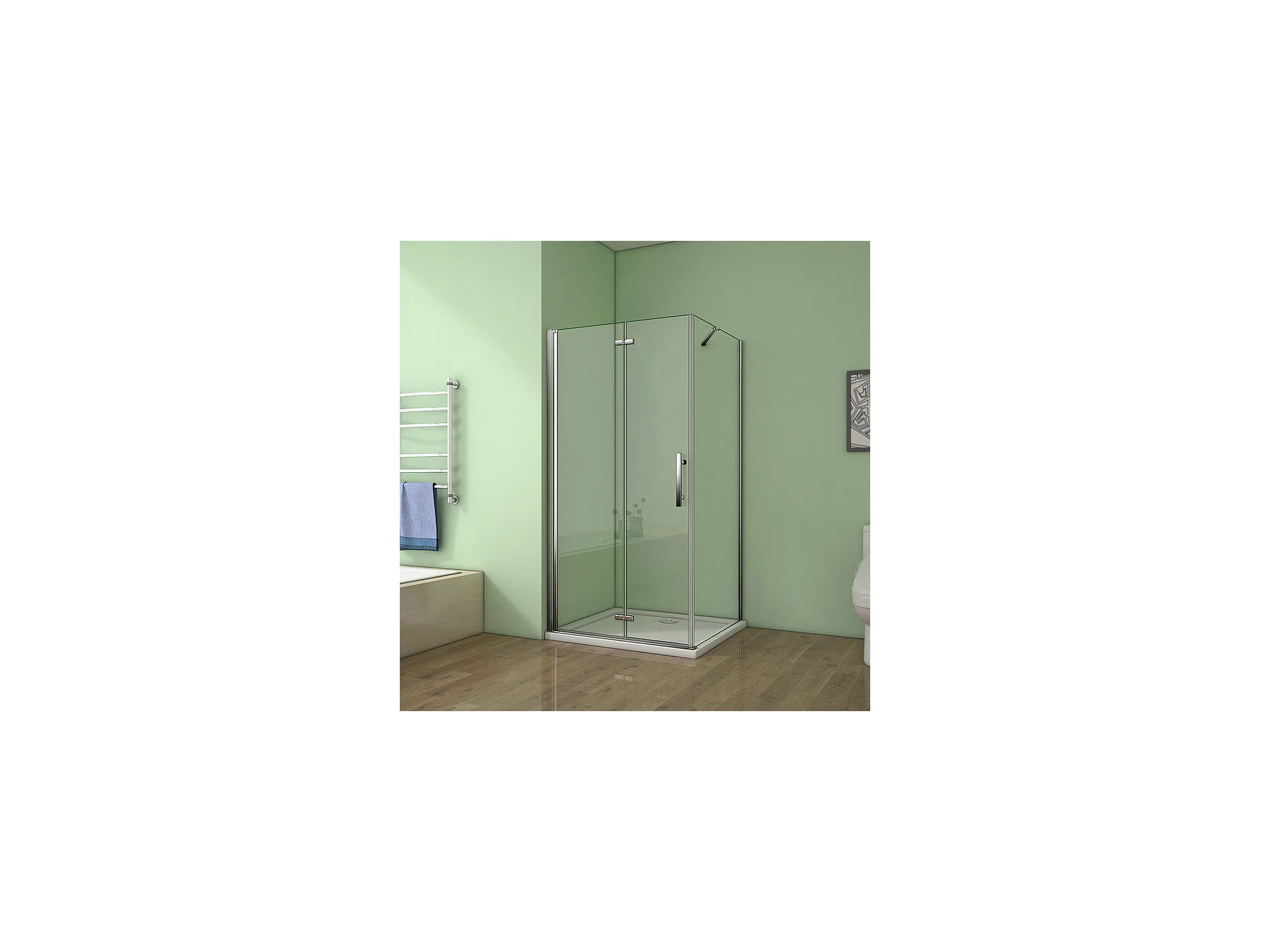 Cabine de douche pivotante et pliante 100x70x185cm en 6mm verre anticalcaire, porte de douche + paroi latérale avec barre fixée d'angle