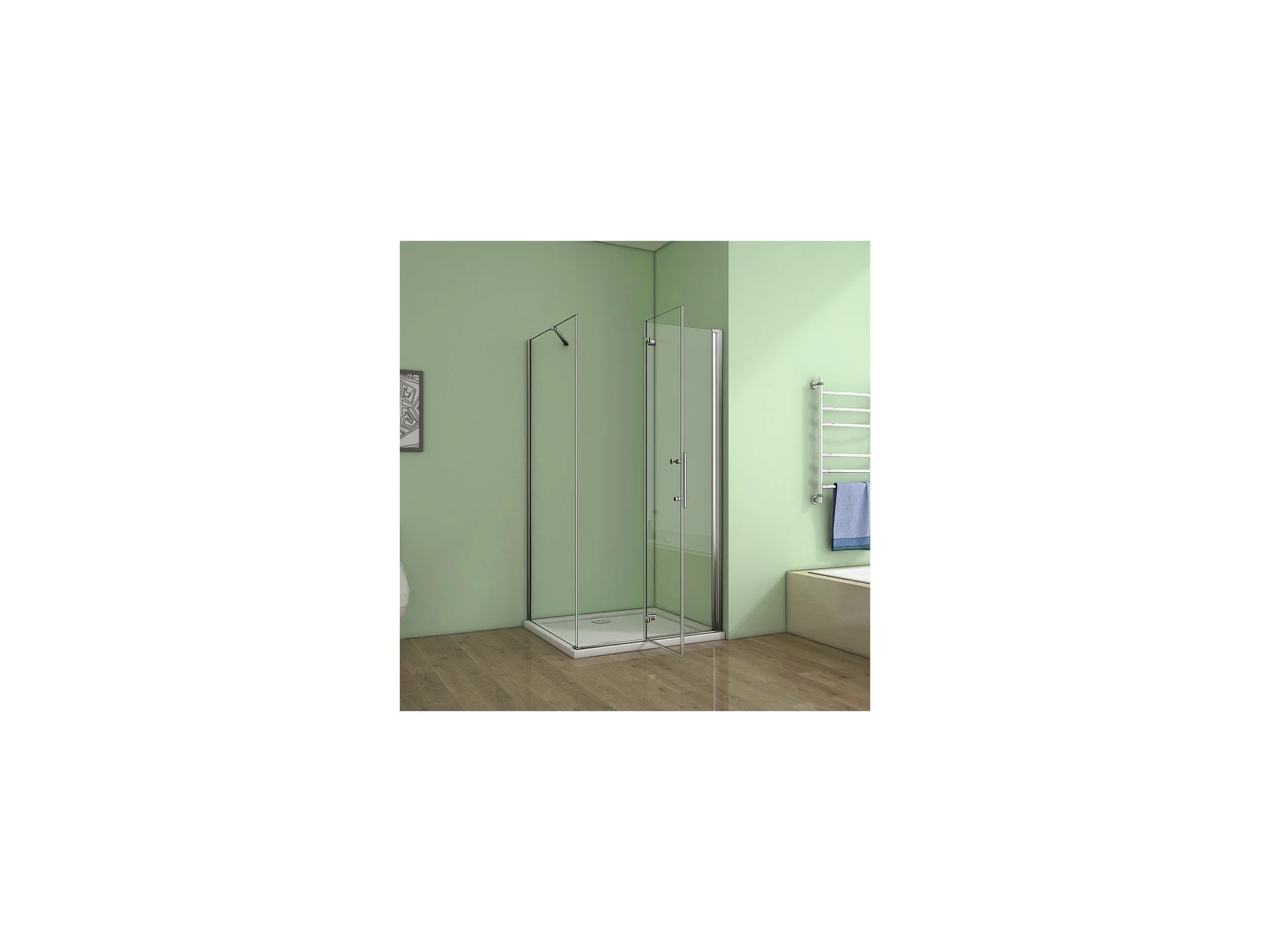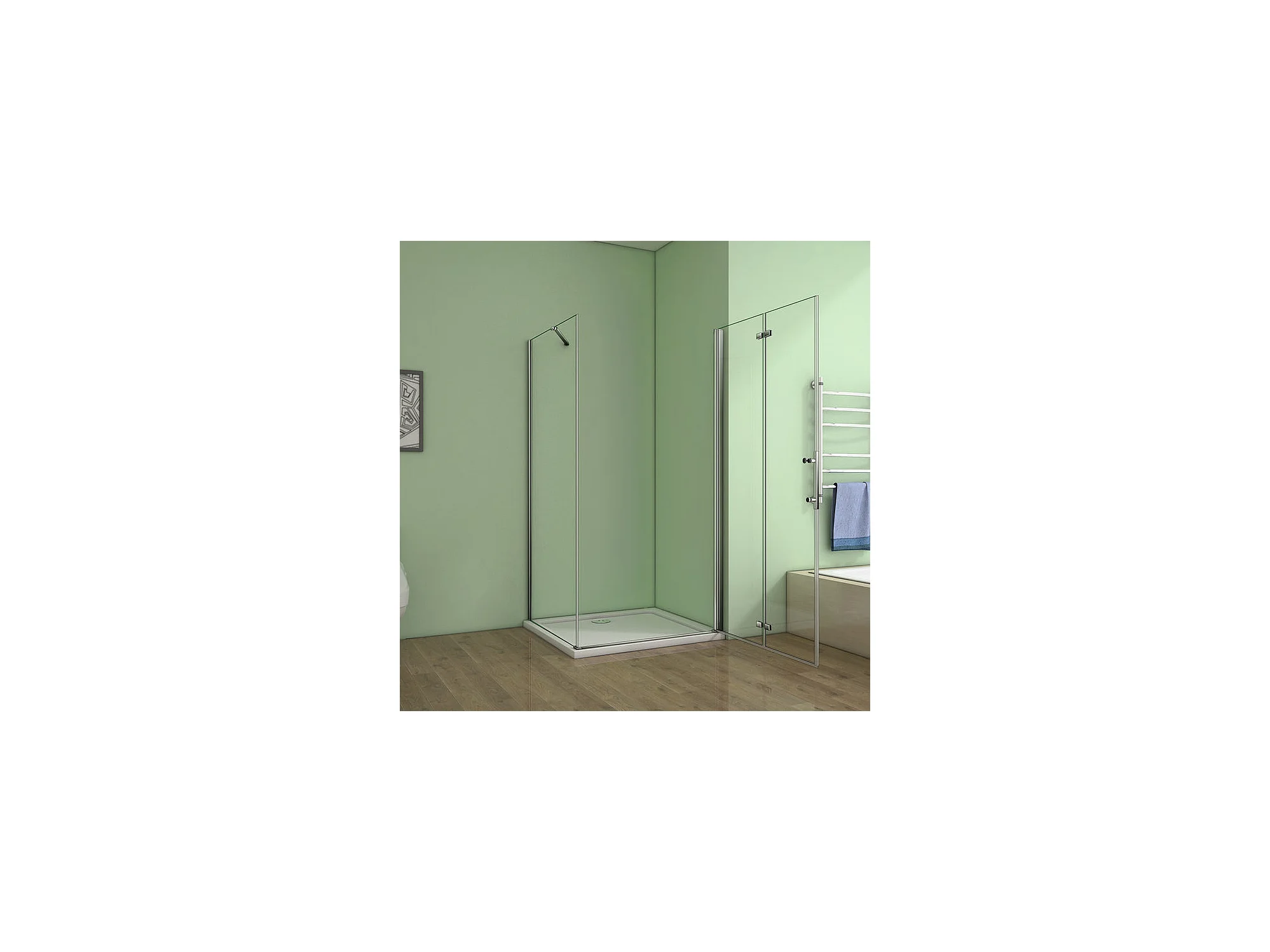 Cabine de douche pivotante et pliante 70x90x185cm en 6mm verre anticalcaire, porte de douche + paroi latérale avec barre fixée d'angle