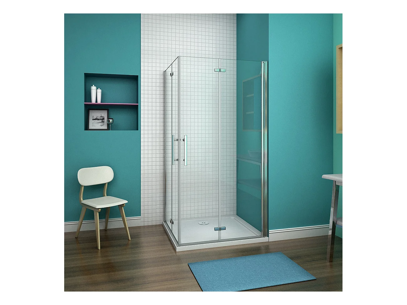 Cabine de douche pivotante et pliante 90x80x195cm en 6mm verre securit anticalcaire, poignée en inox